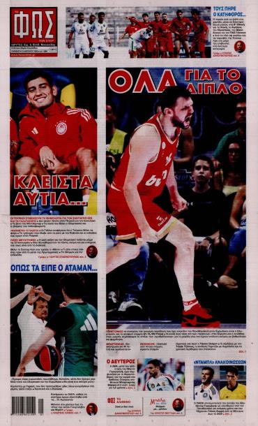 Τα αθλητικά πρωτοσέλιδα σήμερα (2/1).