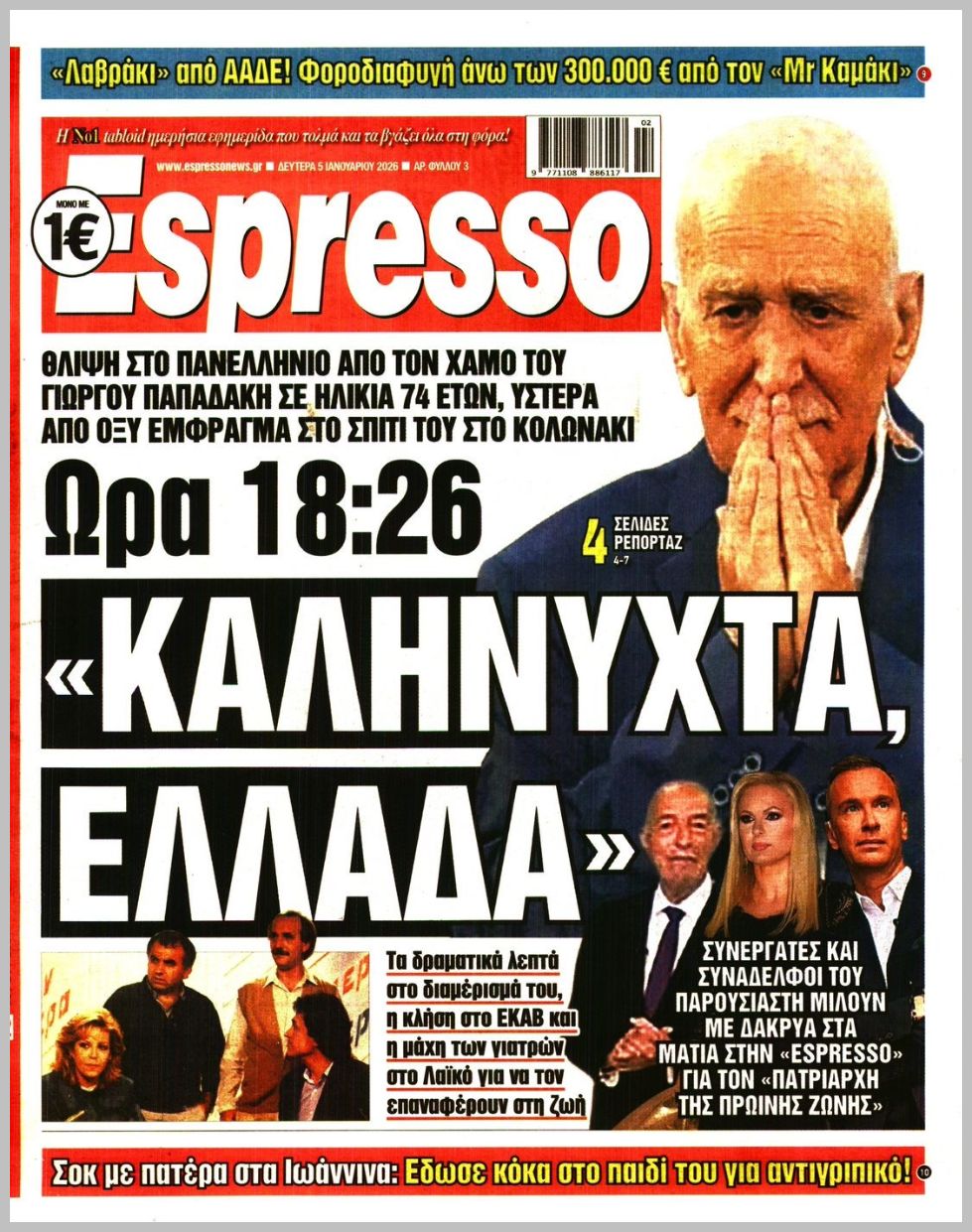 05/01/2026 09:26 Γιώργος Παπαδάκης: Με δάκρυα και βαθιά συγκίνηση τον αποχαιρετούν οι συνεργάτες του στο «Καλημέρα Ελλάδα»