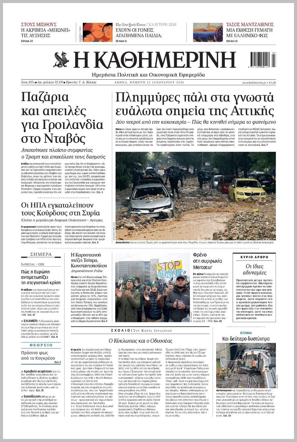 22/01/2026 08:07 Σε ποιες περιοχές επιμένει η κακοκαιρία την Πέμπτη – Καταιγίδες και θυελλώδεις άνεμοι
