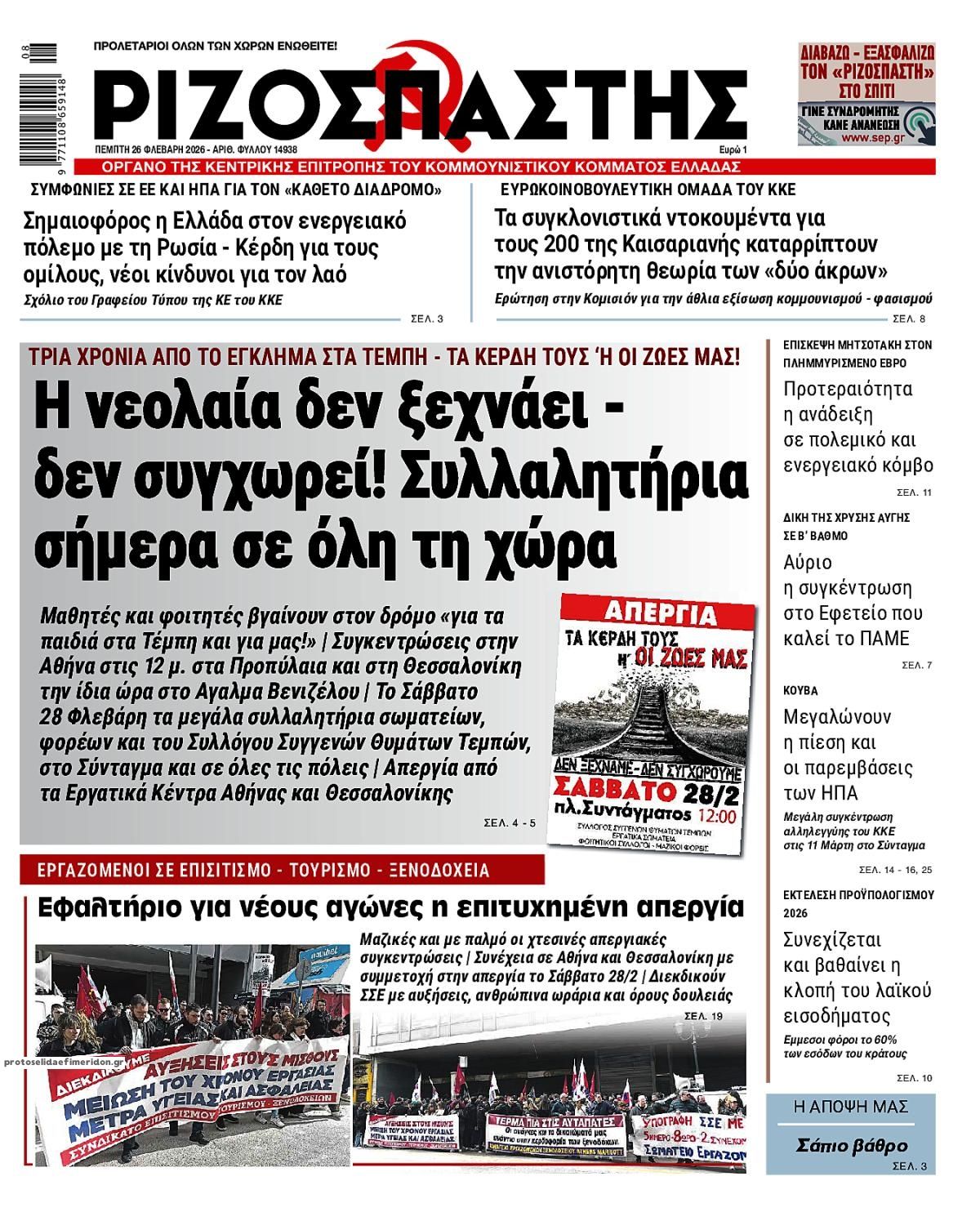26/02/2026 08:13 Μαζικά συλλαλητήρια για τα Τέμπη σε όλη την Ελλάδα - Σε πλήρη ετοιμότητα η ΕΛ.ΑΣ., τα μέτρα ασφαλείας