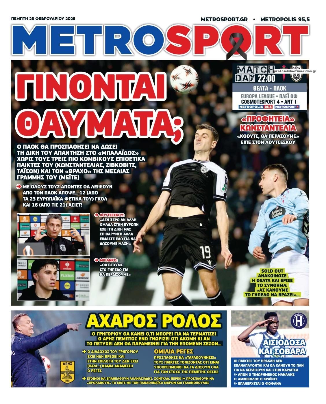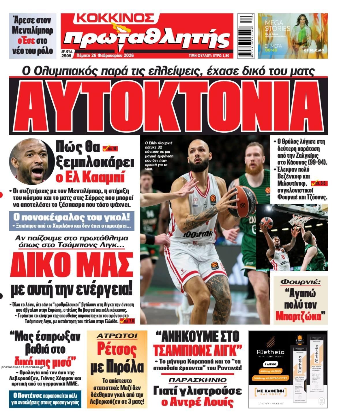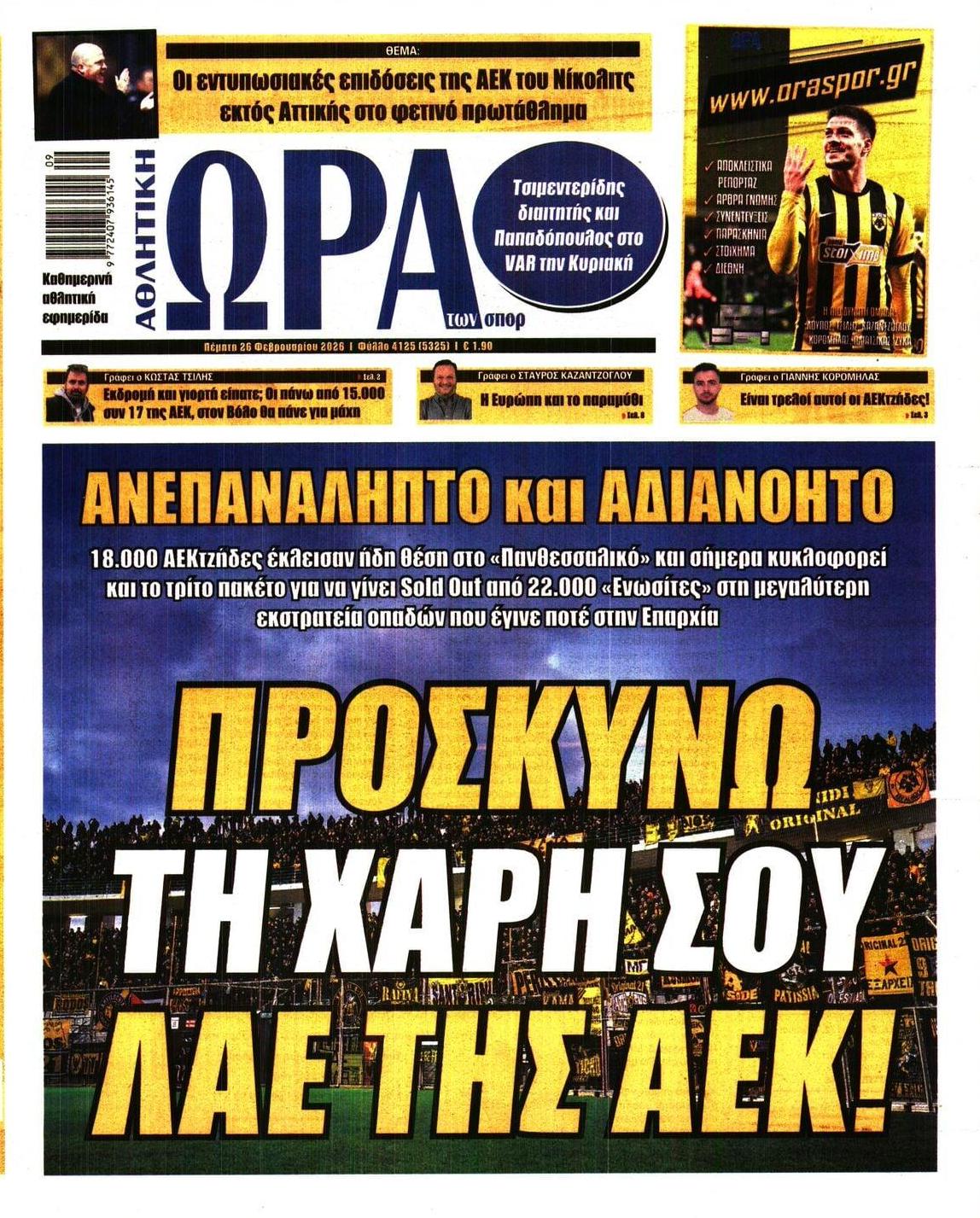 26/02/2026 08:39 Οι αθλητικές μεταδόσεις της ημέρας (26/2): Πού θα δείτε τις ευρωπαϊκές «μάχες» των Παναθηναϊκού και ΠΑΟΚ