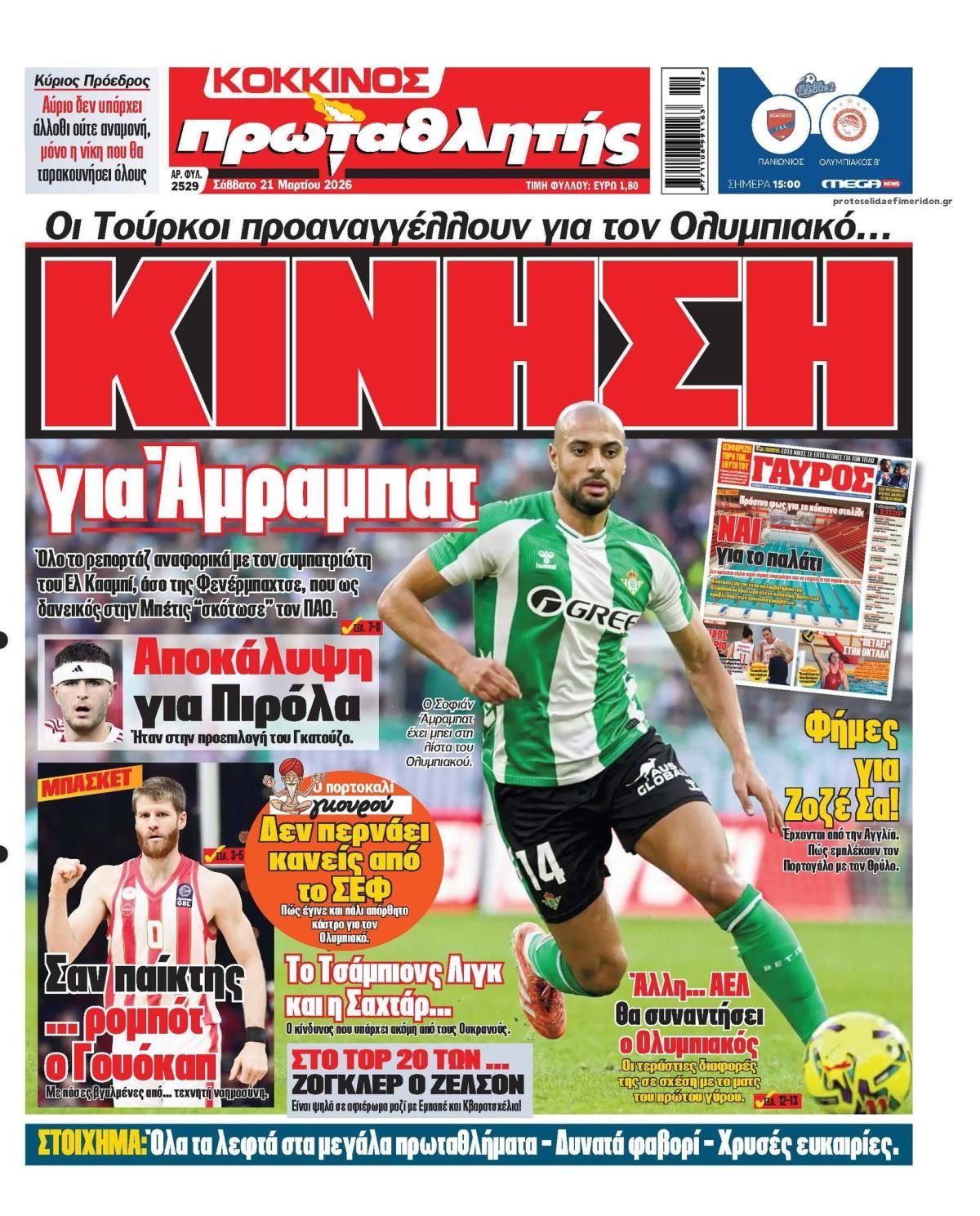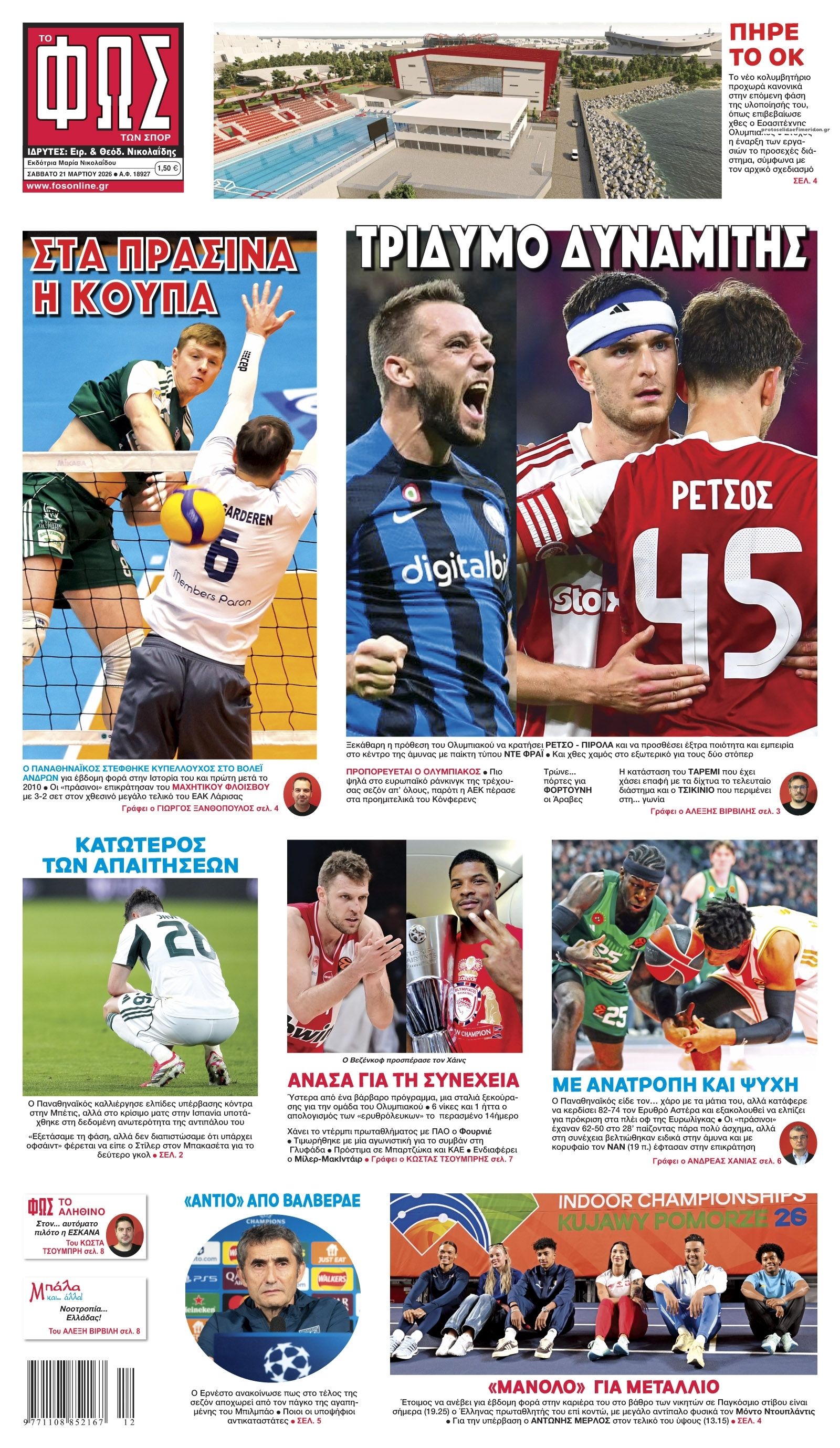 Tα αθλητικά πρωτοσέλιδα της ημέρας (21/3)