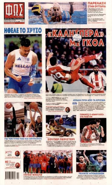 Τα αθλητικά πρωτοσέλιδα της ημέρας (22/3)