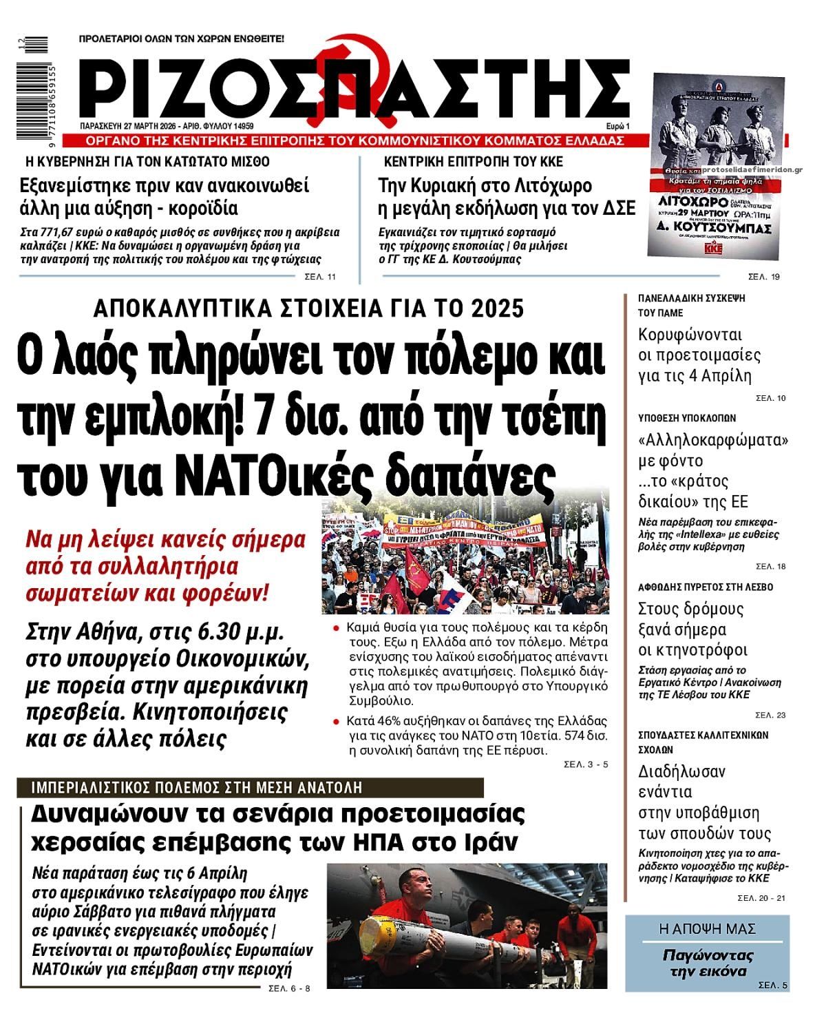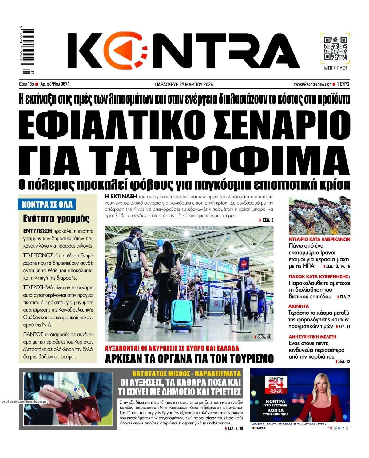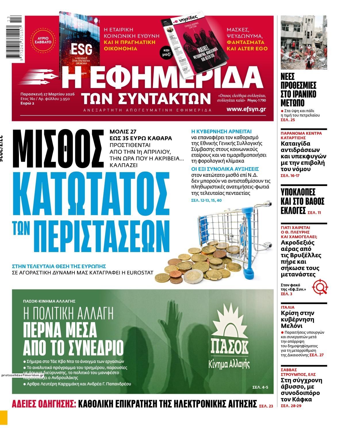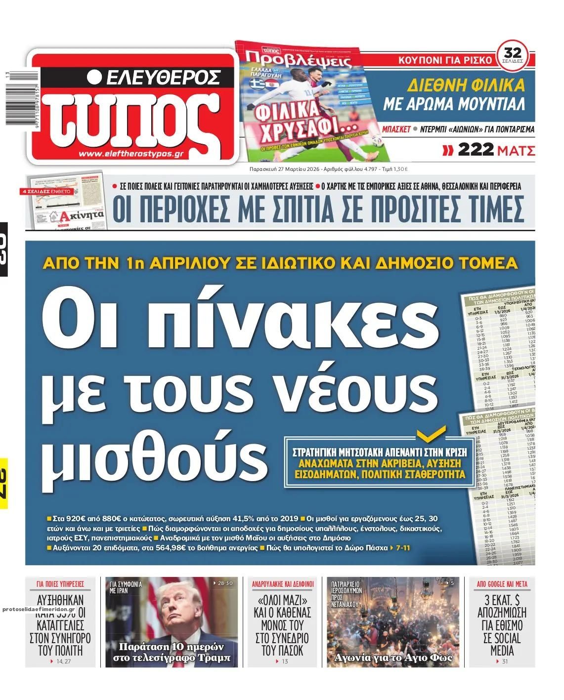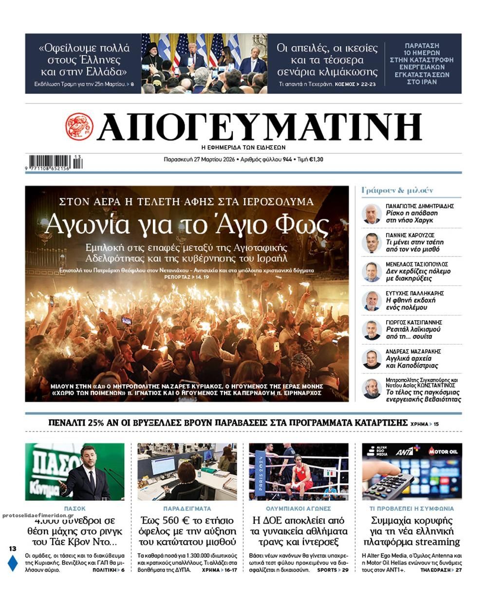 Τα πολιτικά πρωτοσέλιδα της ημέρας (27/3)