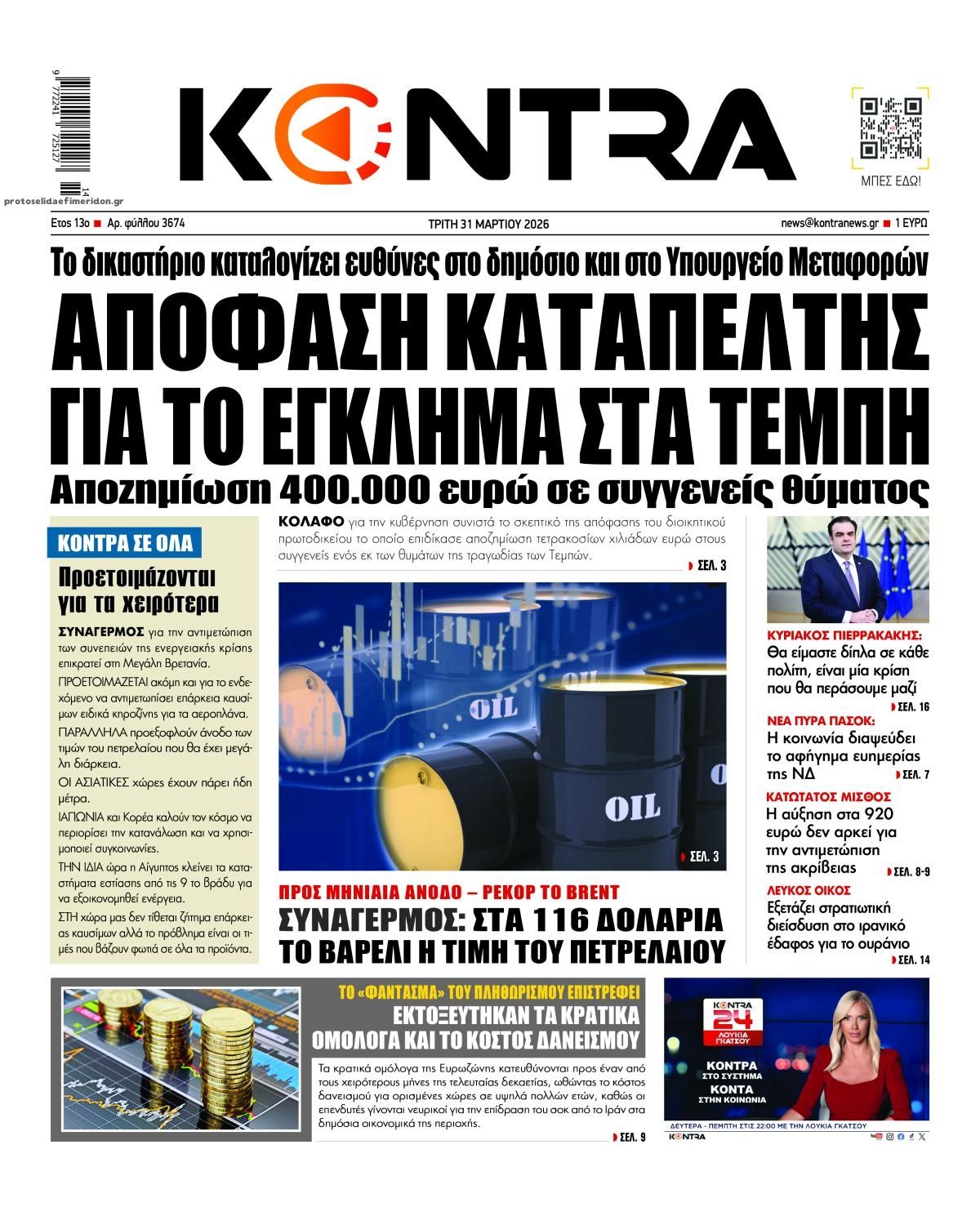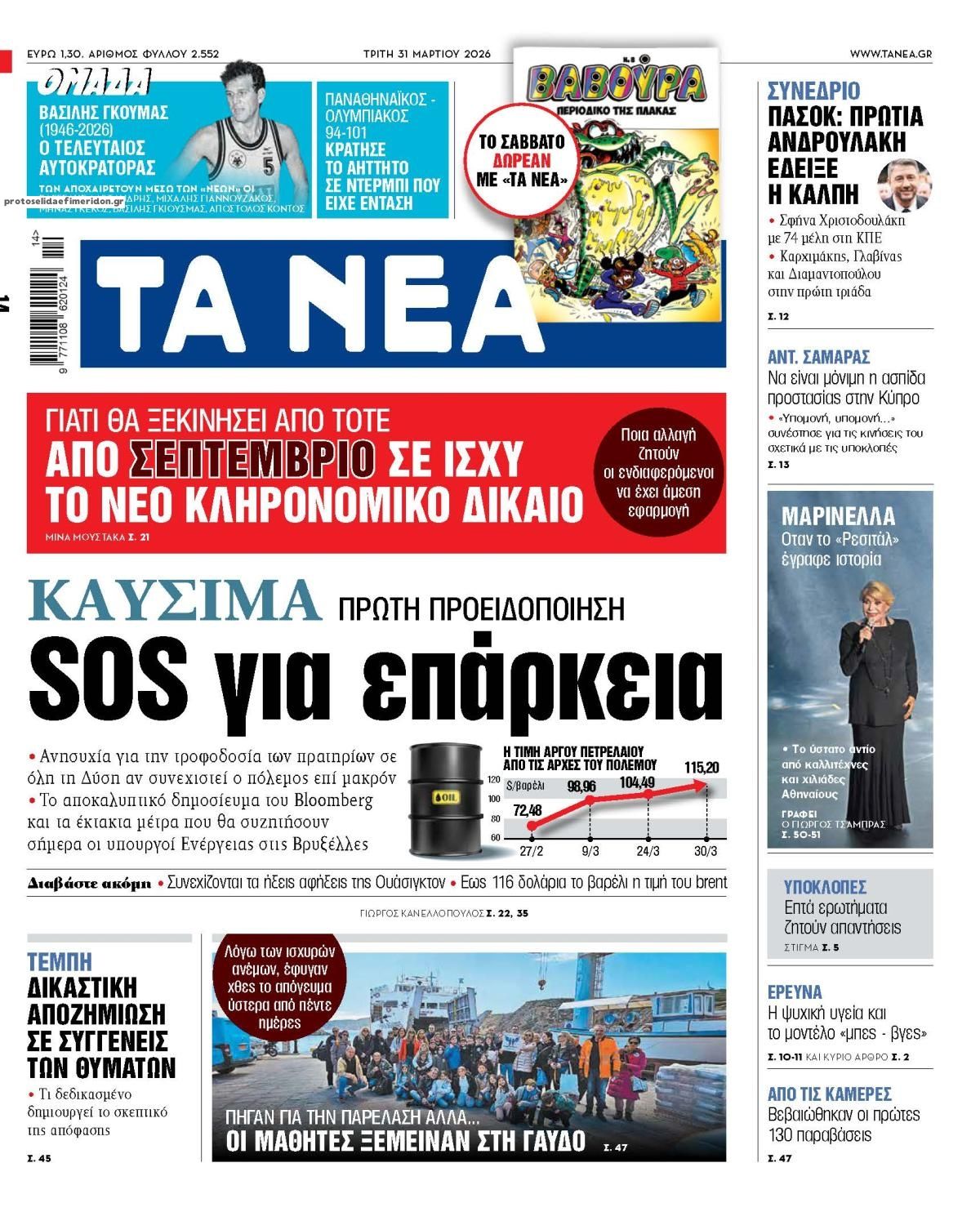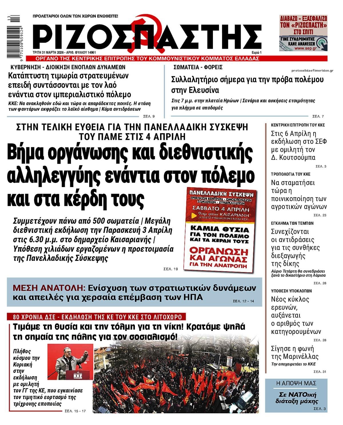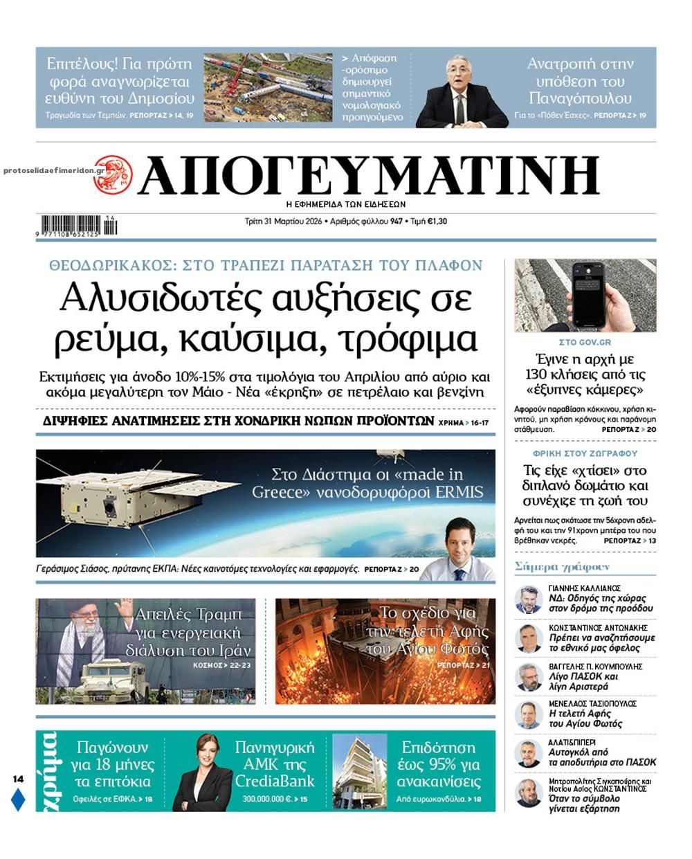 Τα πολιτικά πρωτοσέλιδα της ημέρας (31/3)