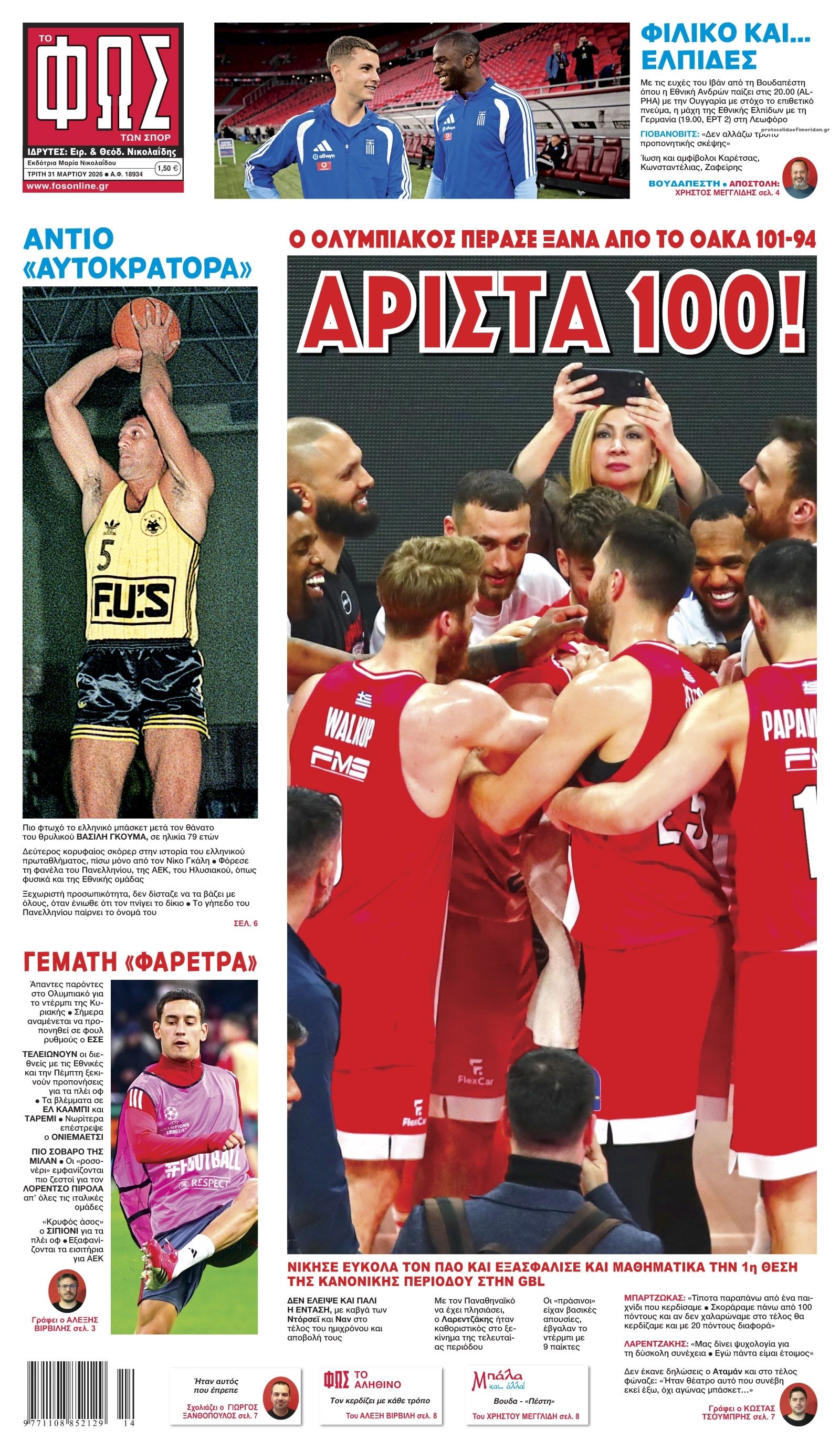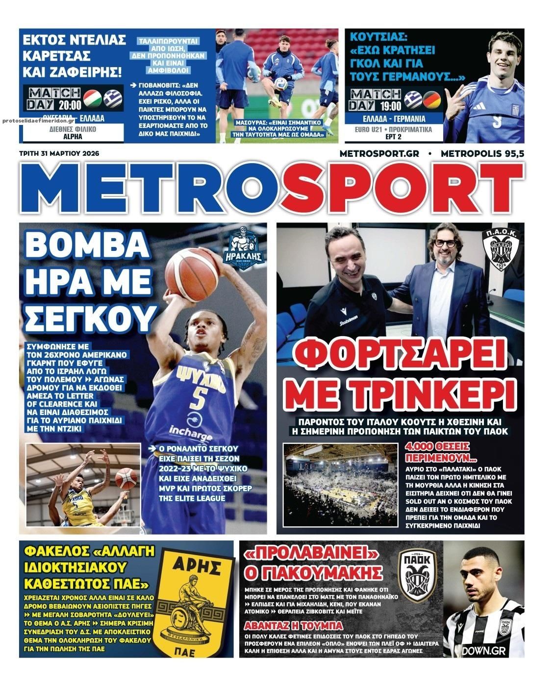 Τα αθλητικά πρωτοσέλιδα της ημέρας (31/3)