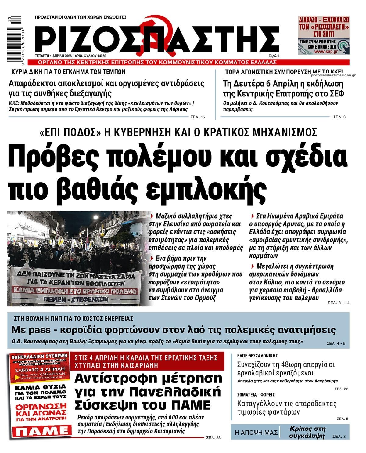Τα πολιτικά πρωτοσέλιδα της ημέρας (1/4)