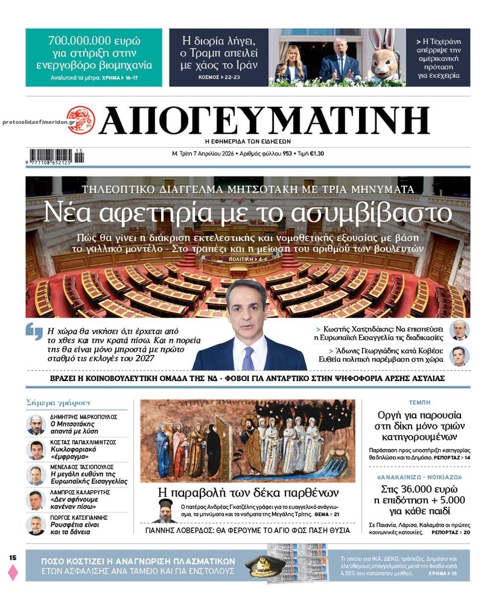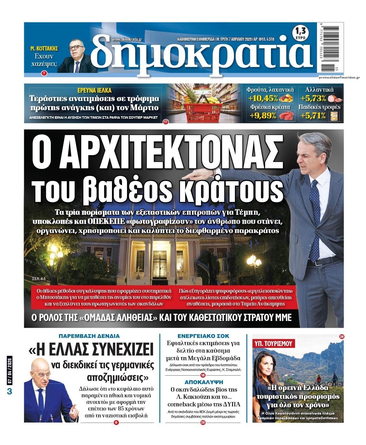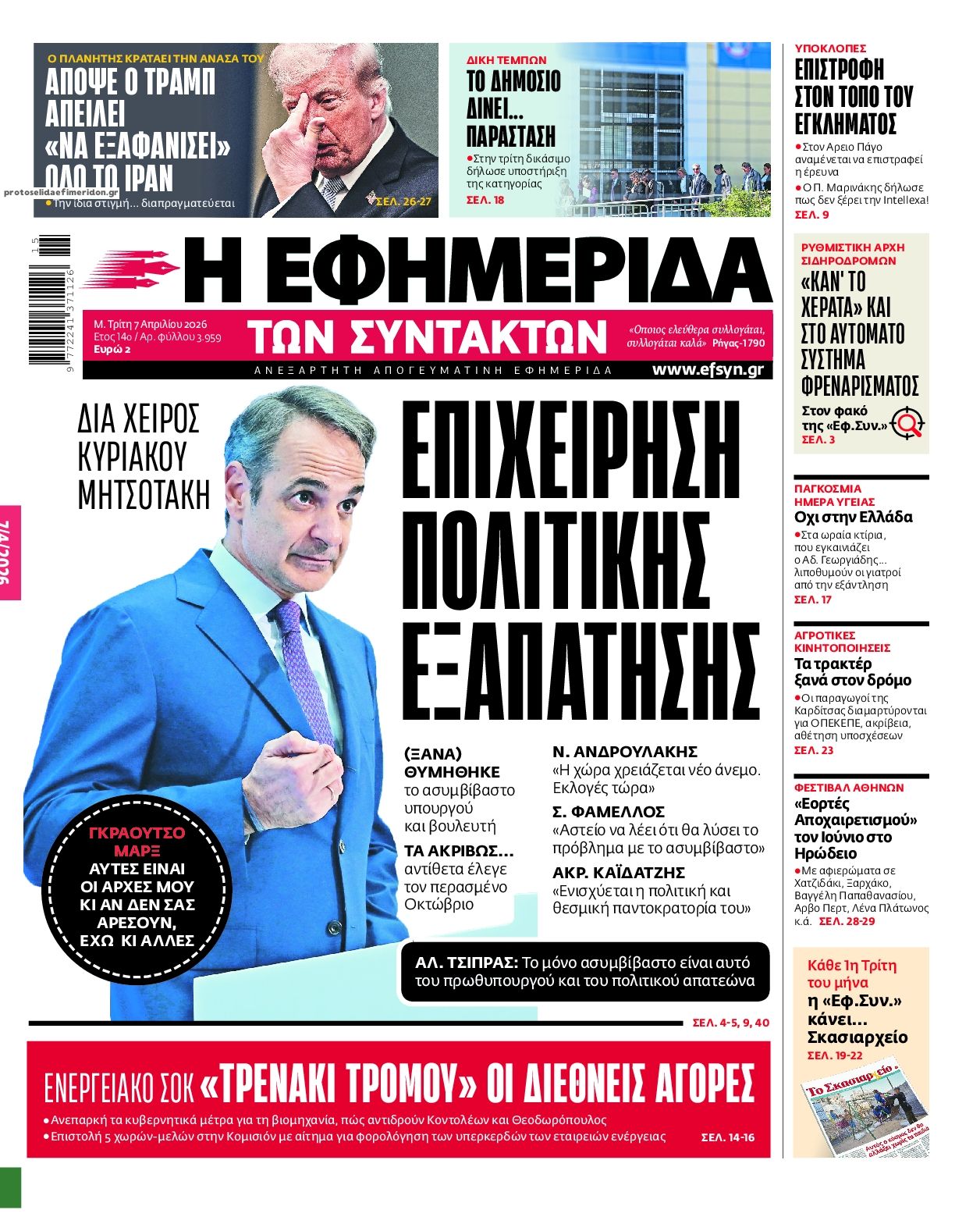 Τα πολιτικά πρωτοσέλιδα της ημέρας (7/4)