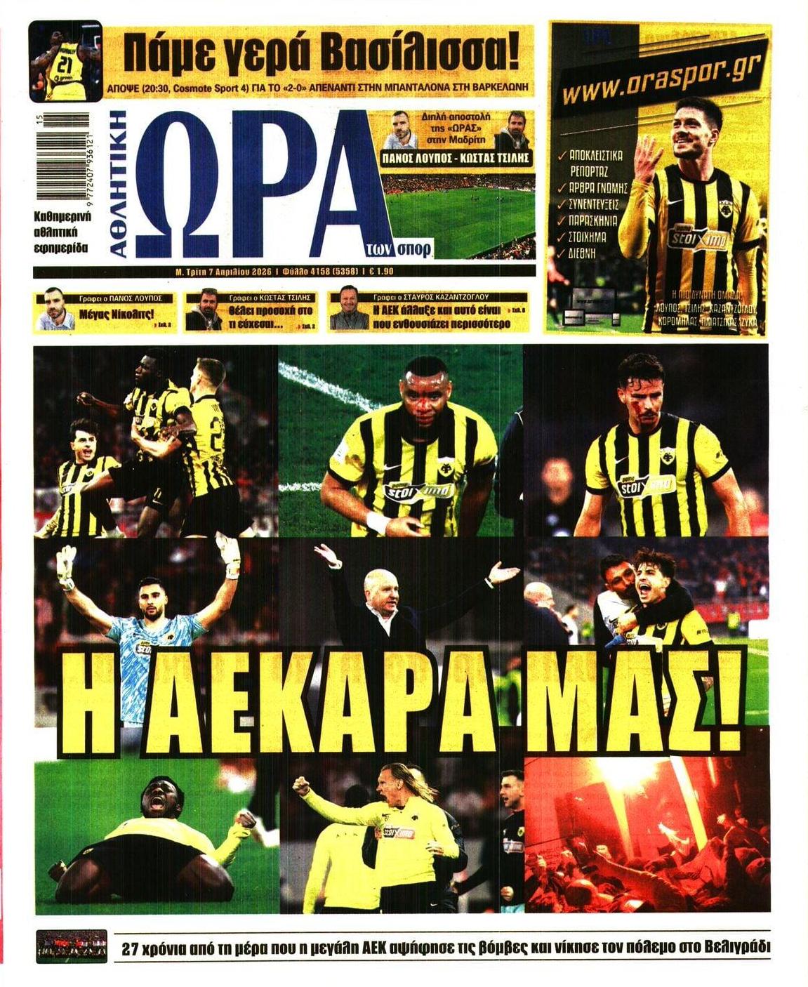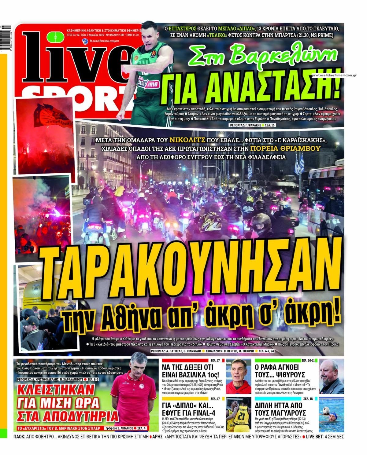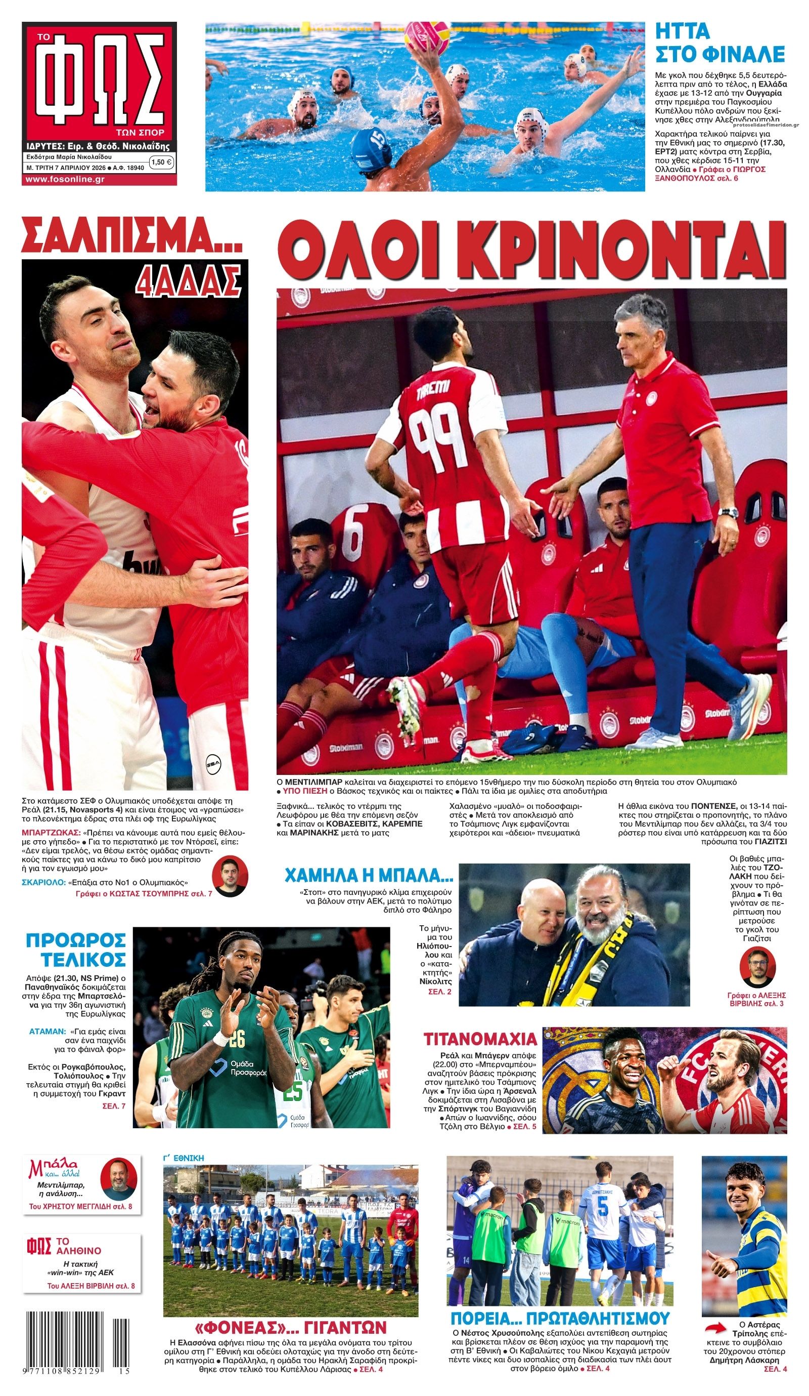 Τα αθλητικά πρωτοσέλιδα της ημέρας (7/4)
