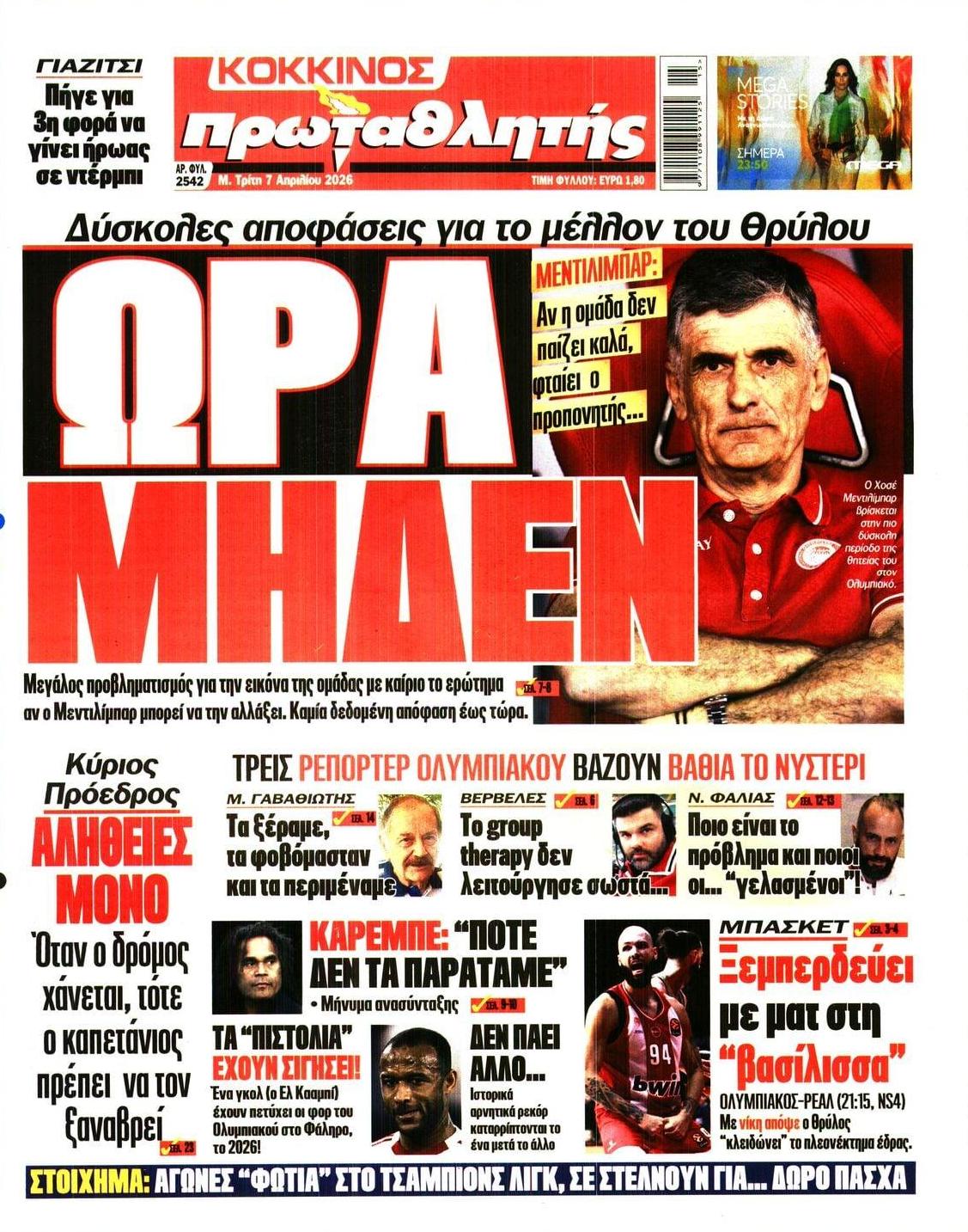 07/04/2026 08:41 Οι αθλητικές μεταδόσεις της Μ. Τρίτης (7/4): Πού θα δείτε τις ισπανικές «μάχες» Ολυμπιακού, Παναθηναϊκού, ΑΕΚ και το Champions League