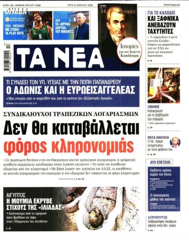 Τα πολιτικά πρωτοσέλιδα της ημέρας (21/4)