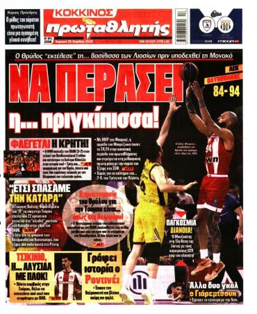 Τα αθλητικά πρωτοσέλιδα της ημέρας (26/4)