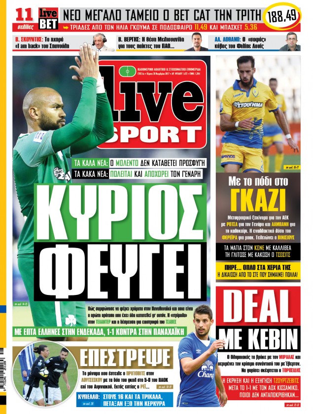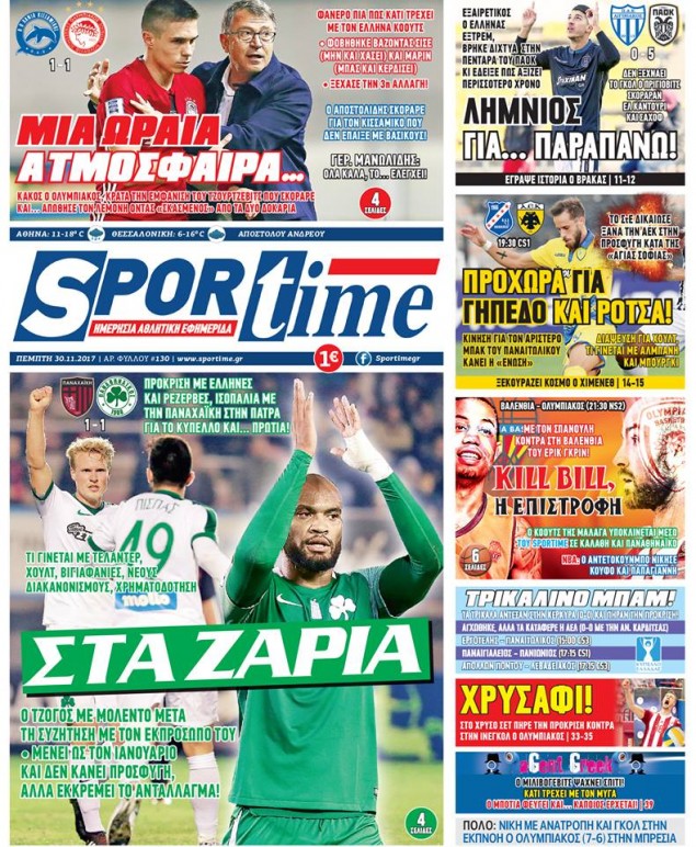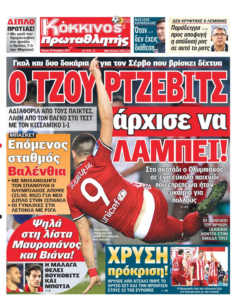 Διαβάστε τα πρωτοσέλιδα των αθλητικών εφημερίδων για σήμερα Πέμπτη (30/11).