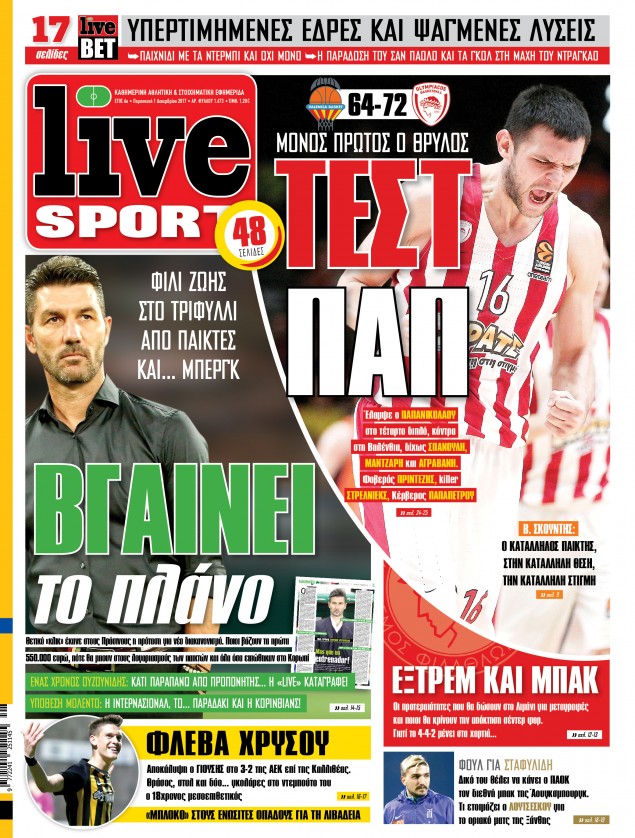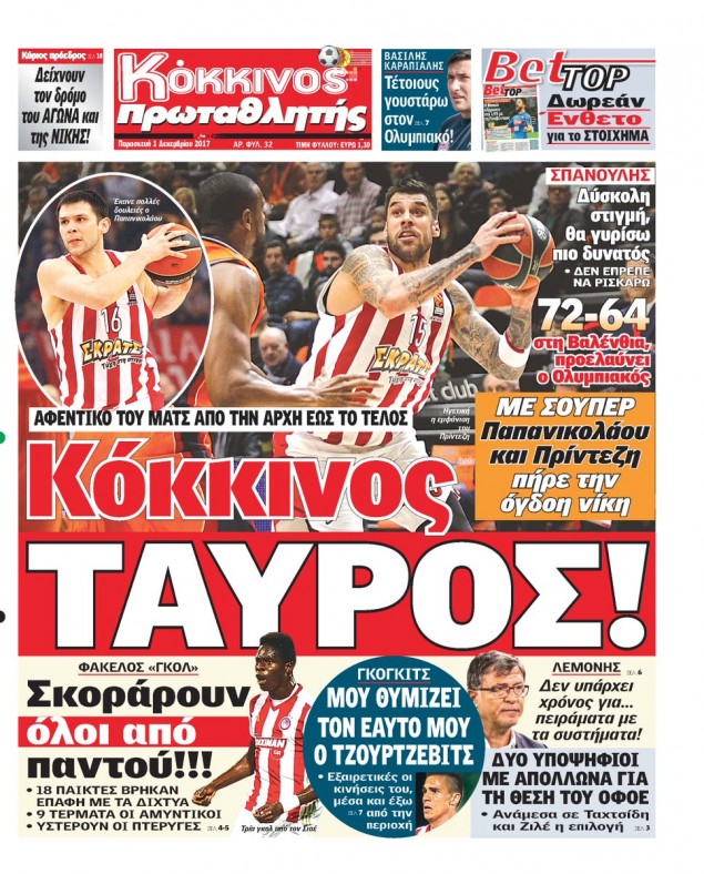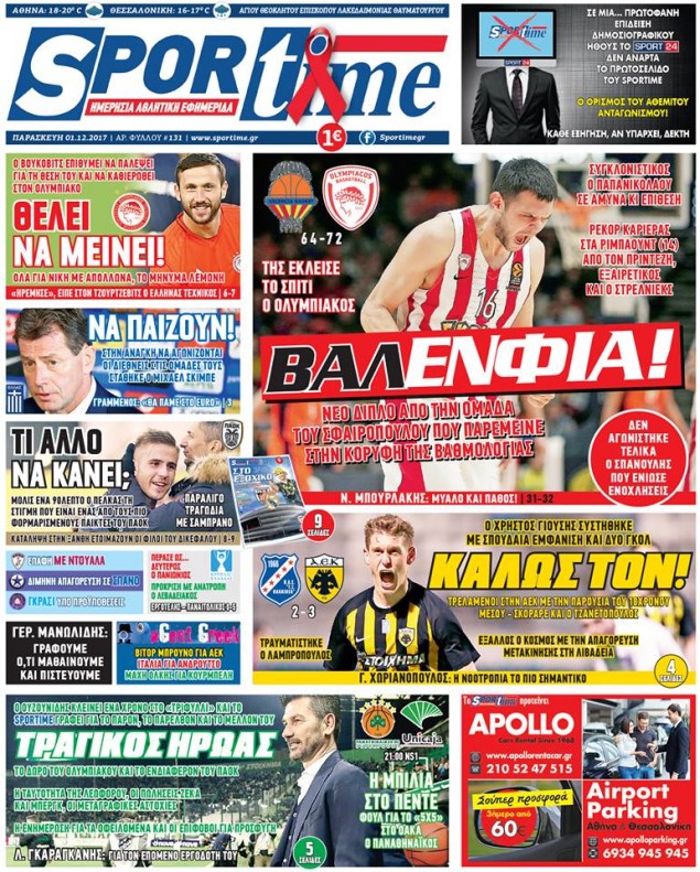 Διαβάστε τα πρωτοσέλιδα των αθλητικών εφημερίδων για σήμερα Παρασκευή (1/12).