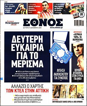 Τα πρωτοσέλιδα των πολιτικών εφημερίδων για σήμερα (17/12)