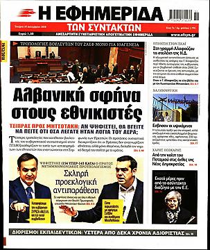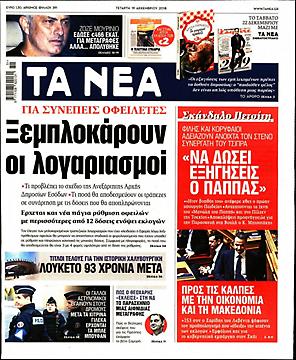 Τα πρωτοσέλιδα των πολιτικών εφημερίδων για σήμερα (19/12)