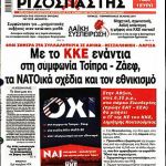 Διαβάστε τα πρωτοσέλιδα των πολιτικών εφημερίδων για σήμερα.