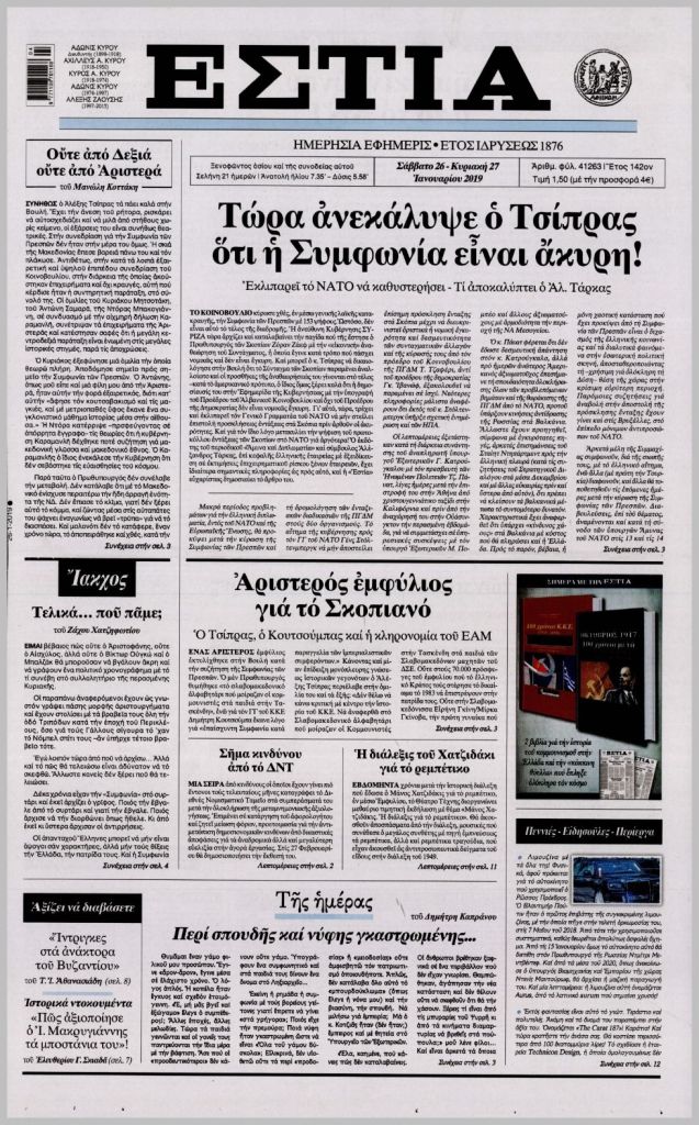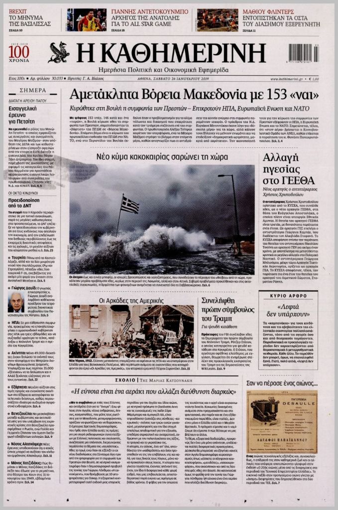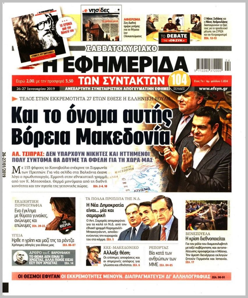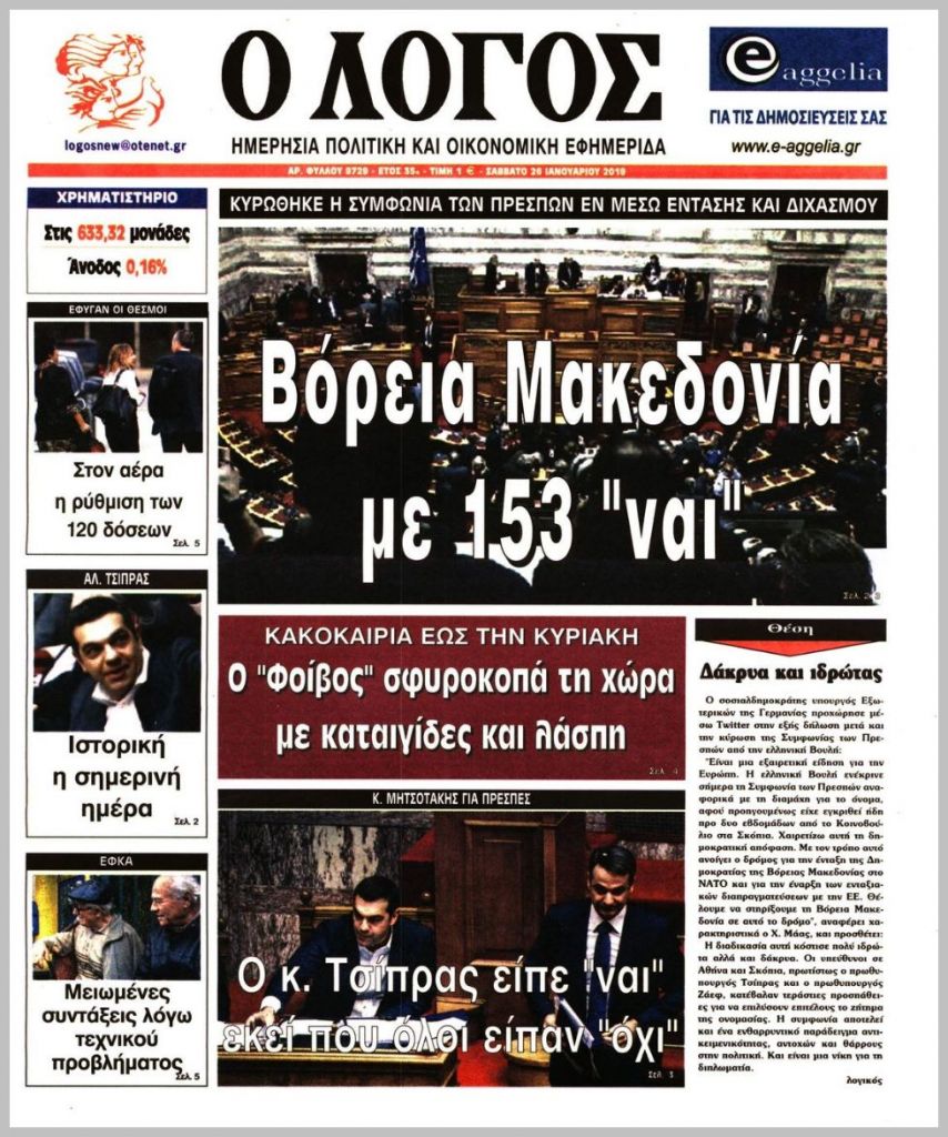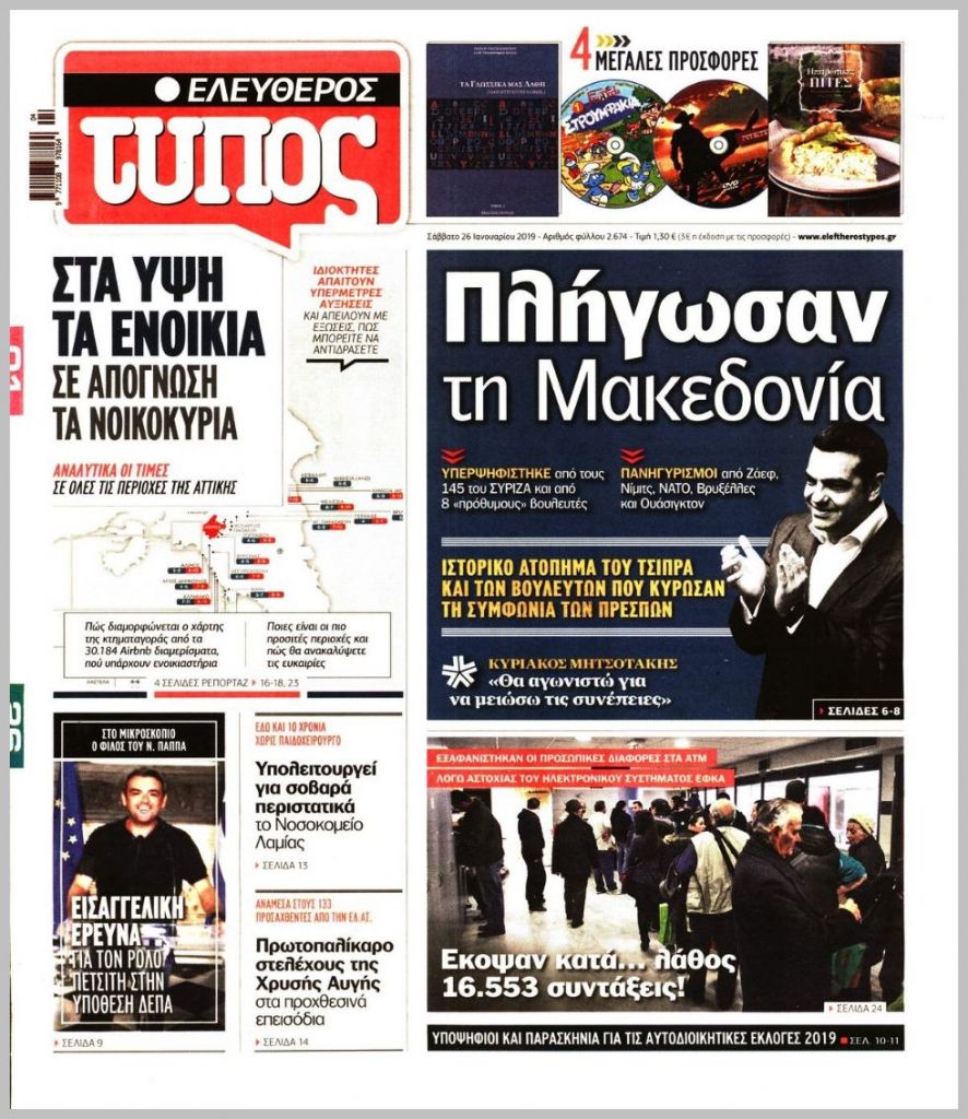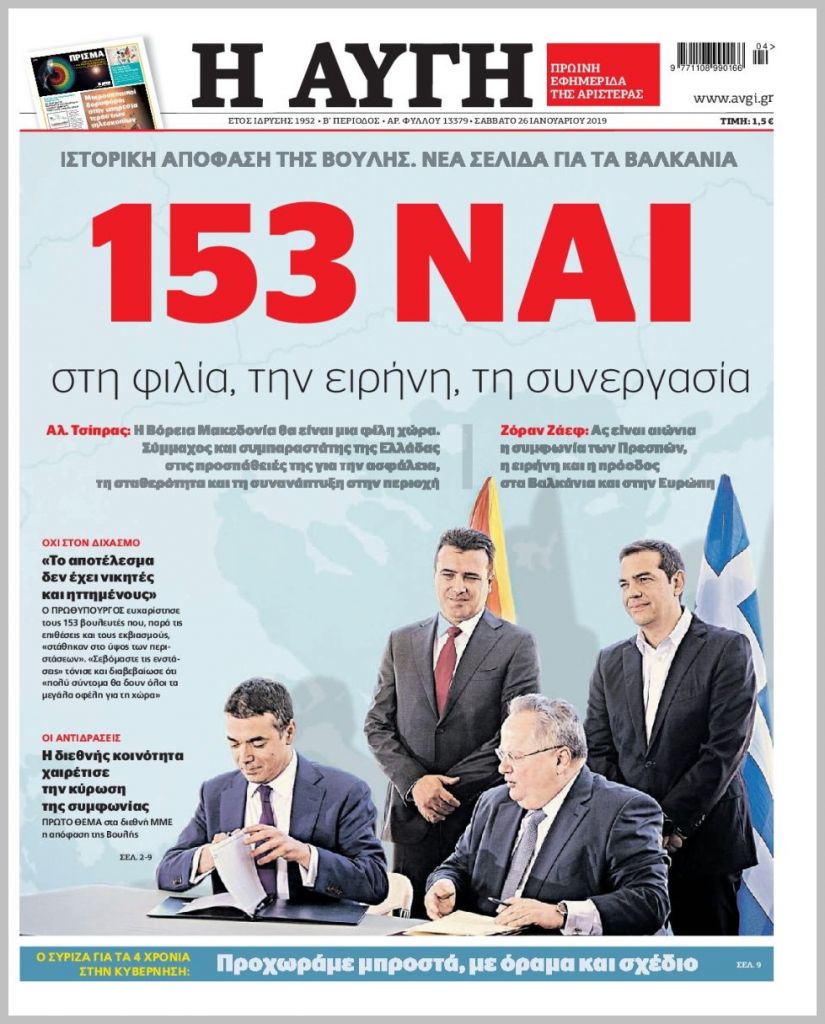 Τα πρωτοσέλιδα των πολιτικών εφημερίδων για σήμερα (26/1)
