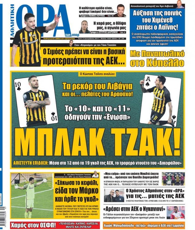Διαβάστε τα πρωτοσέλιδα των αθλητικών εφημερίδων για σήμερα Τρίτη (5/12).