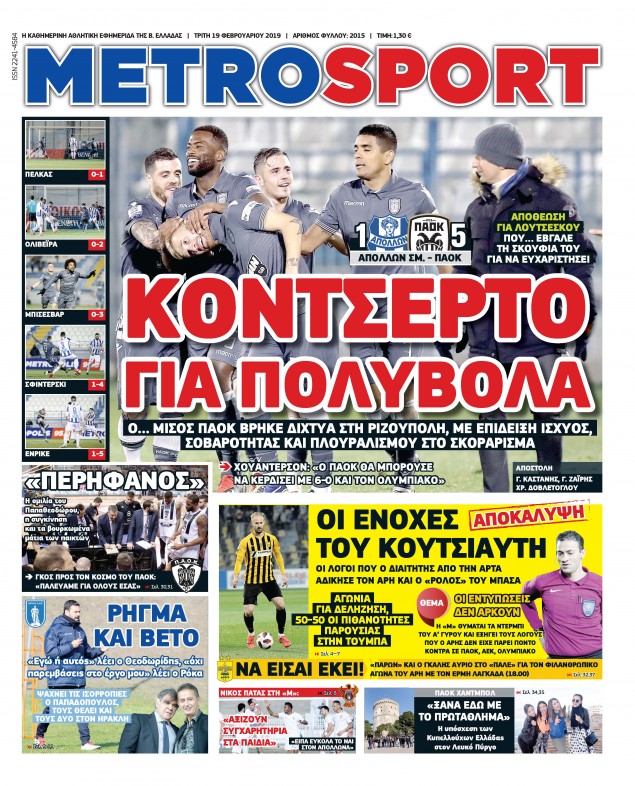 Τα πρωτοσέλιδα των πολιτικών εφημερίδων για σήμερα (19/2)