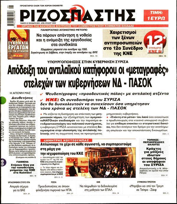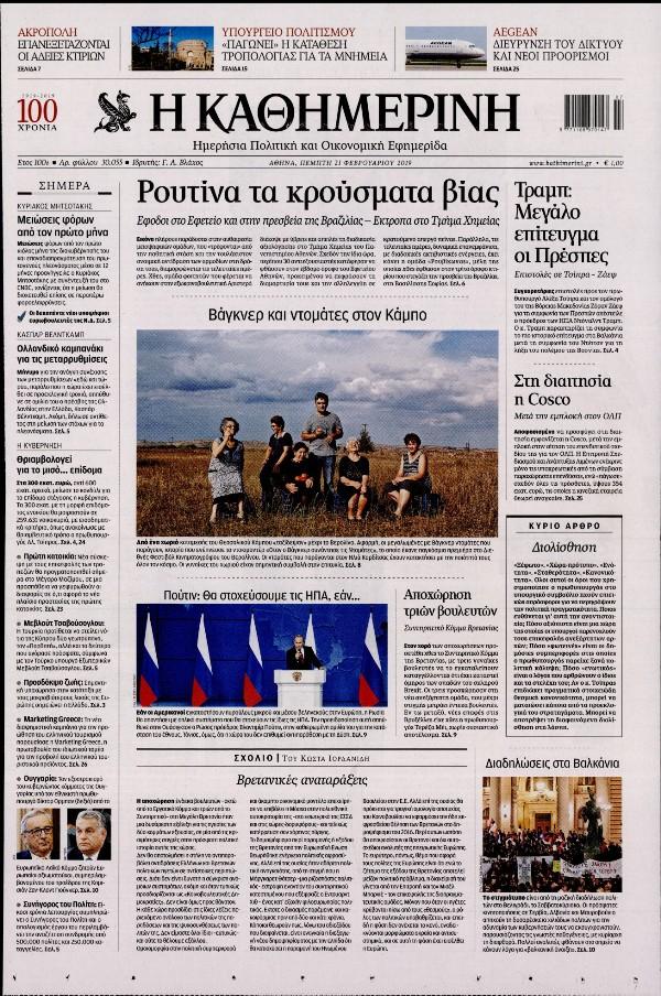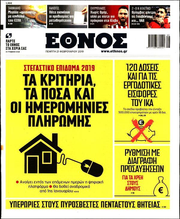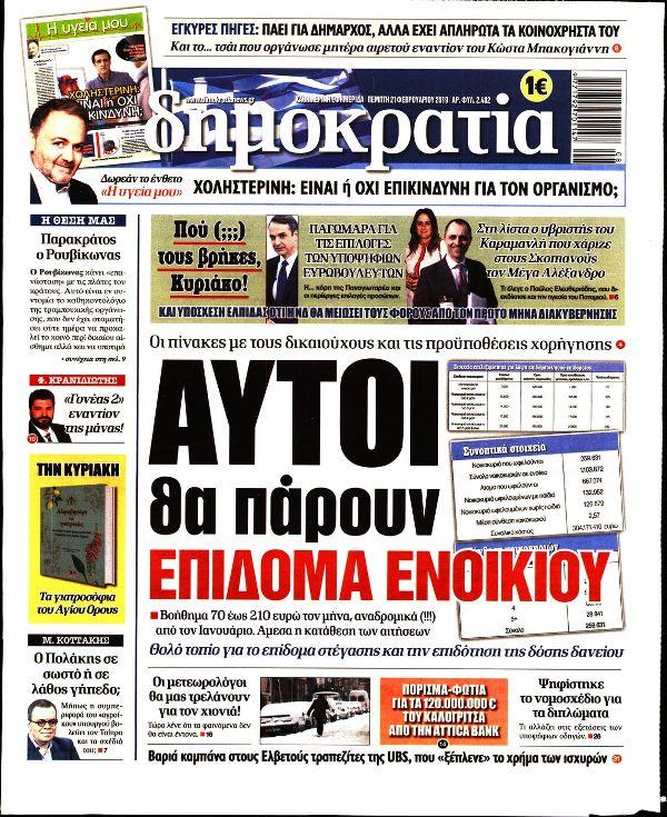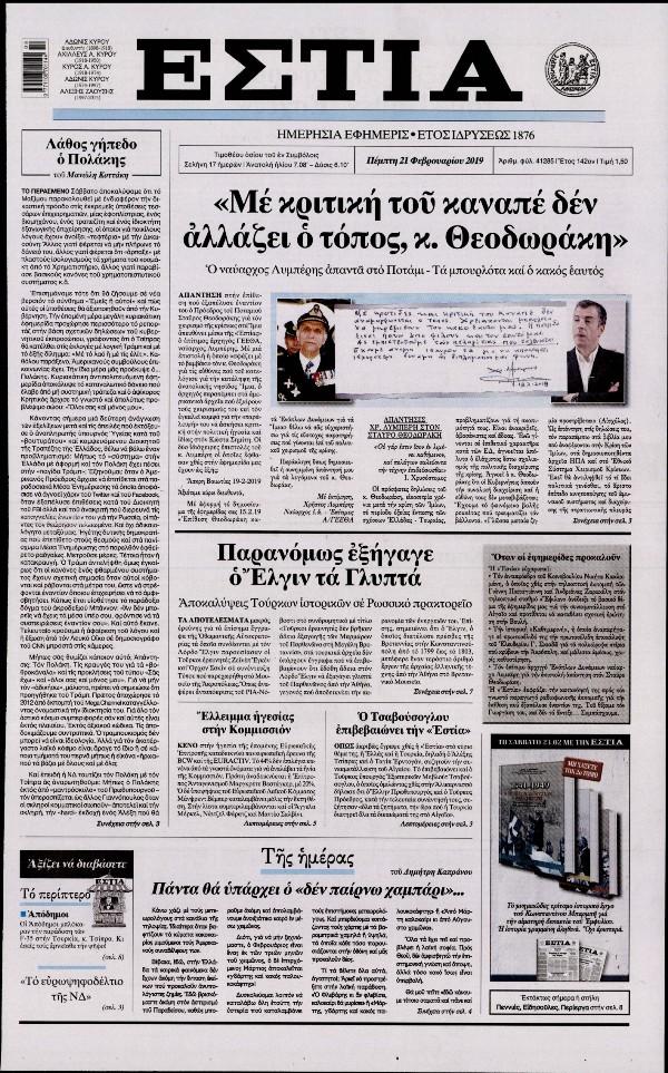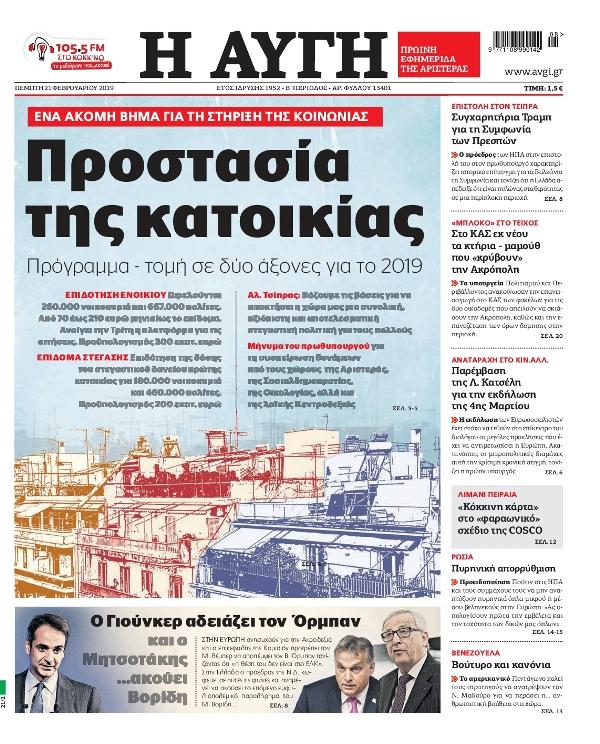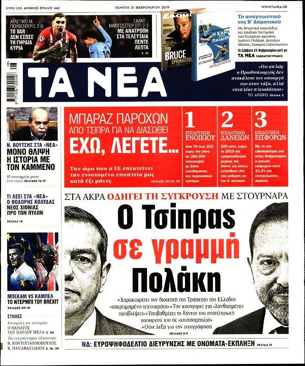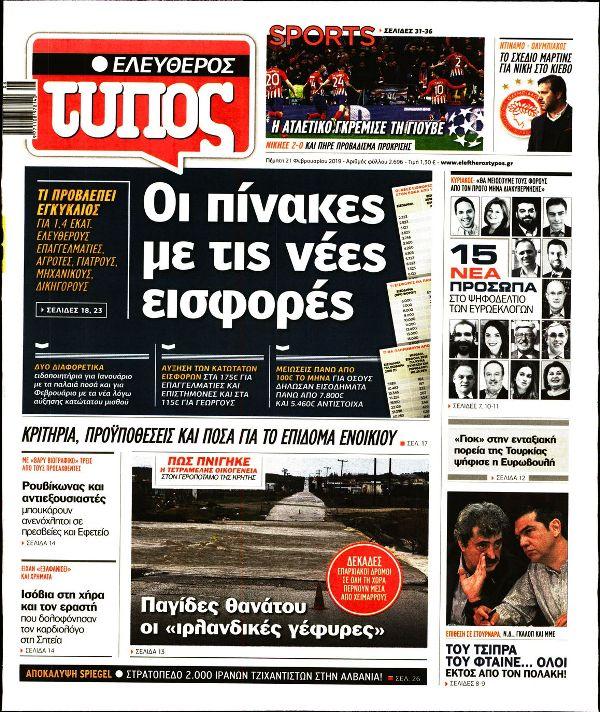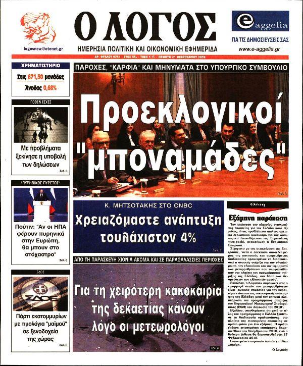 Τα πρωτοσέλιδα των πολιτικών εφημερίδων για σήμερα (21/2)