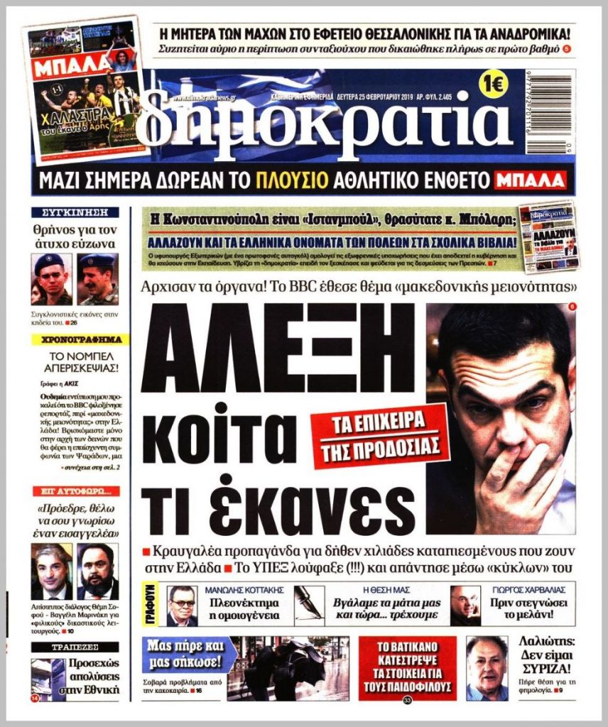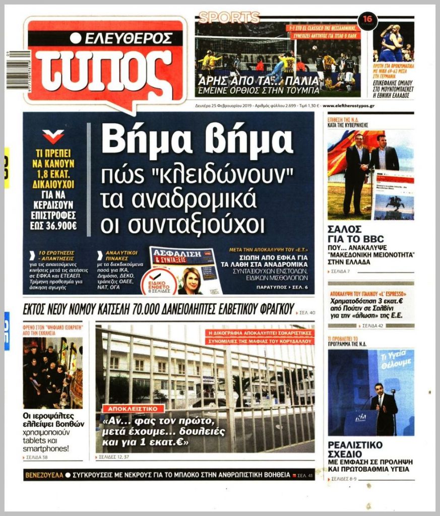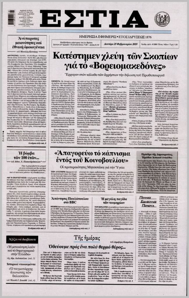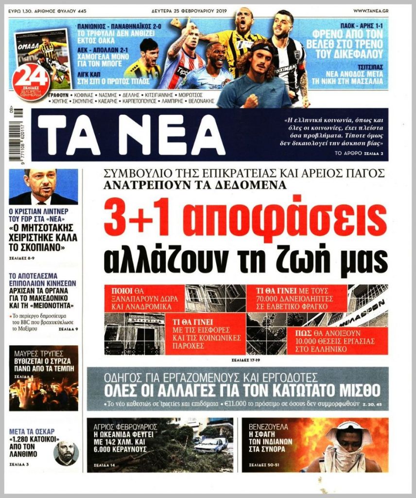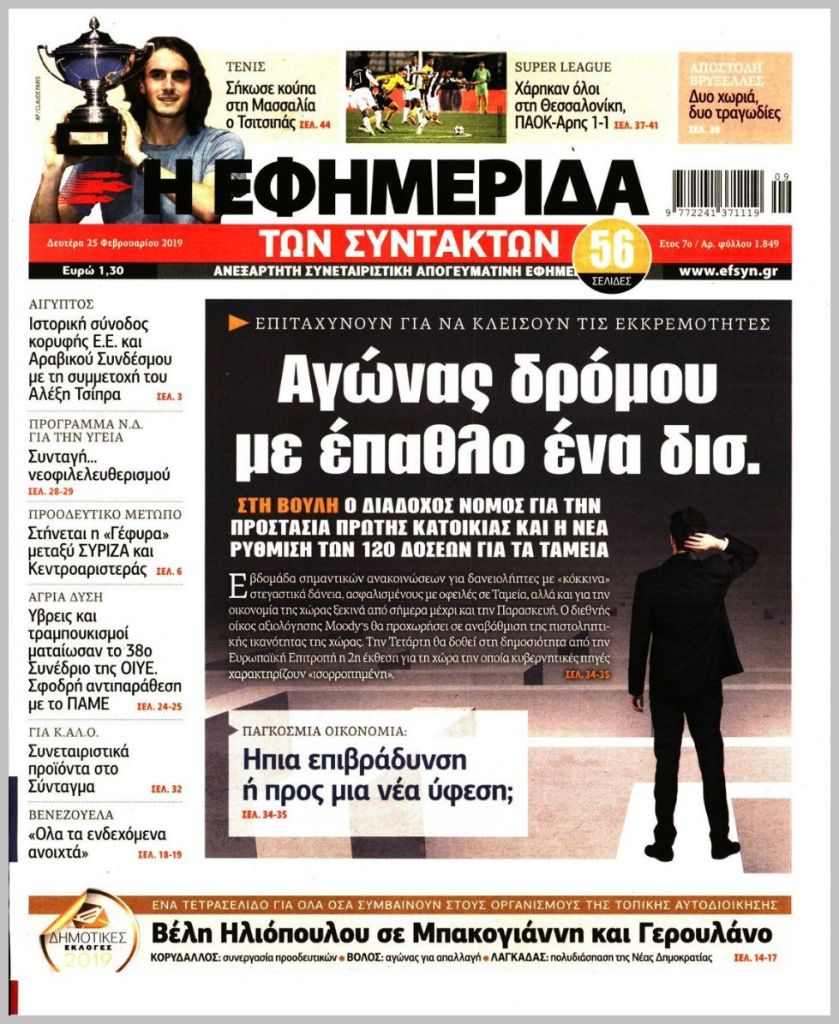 Τα πρωτοσέλιδα των πολιτικών εφημερίδων για σήμερα (25/2)