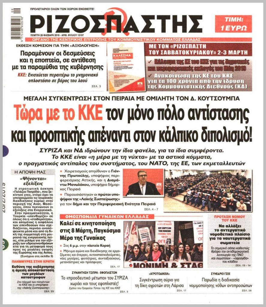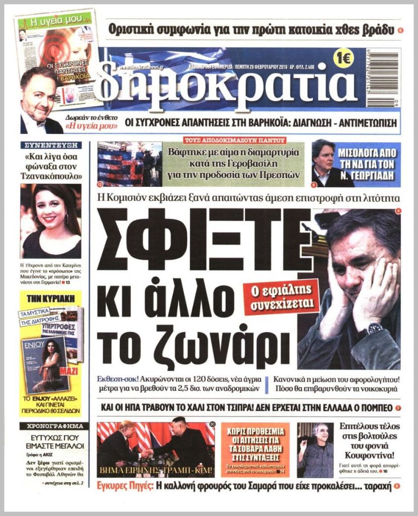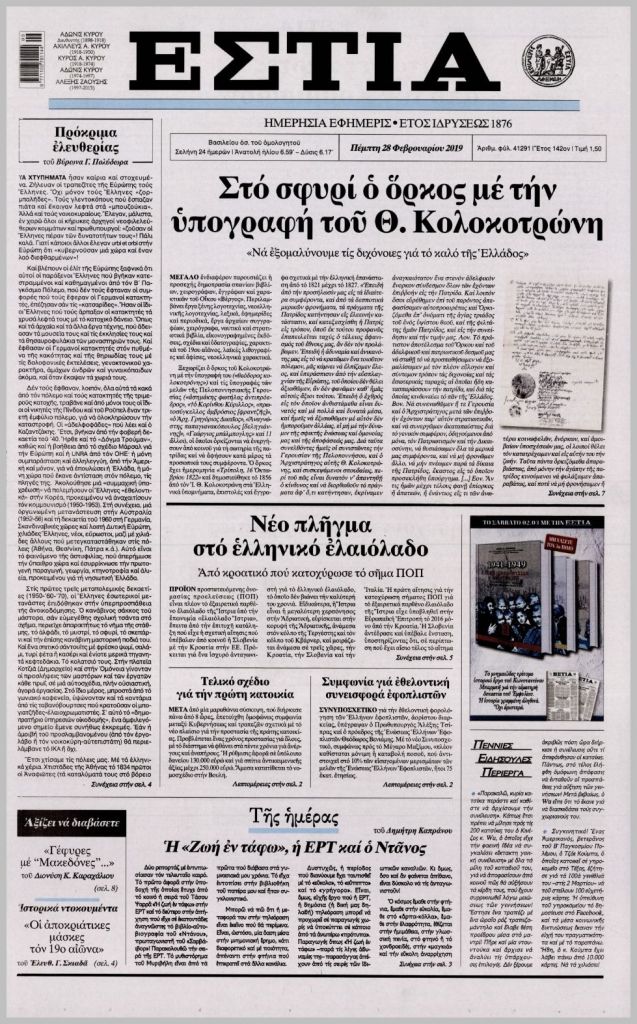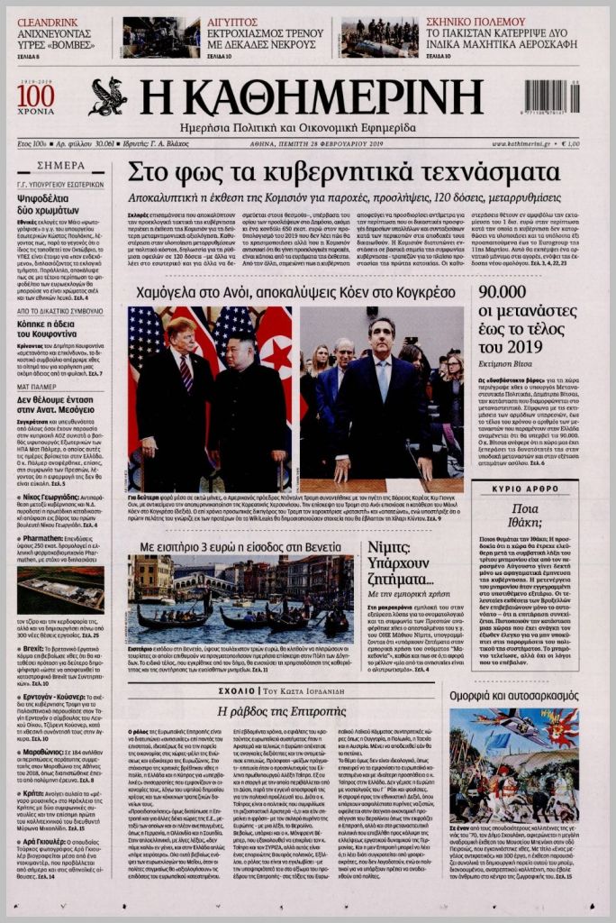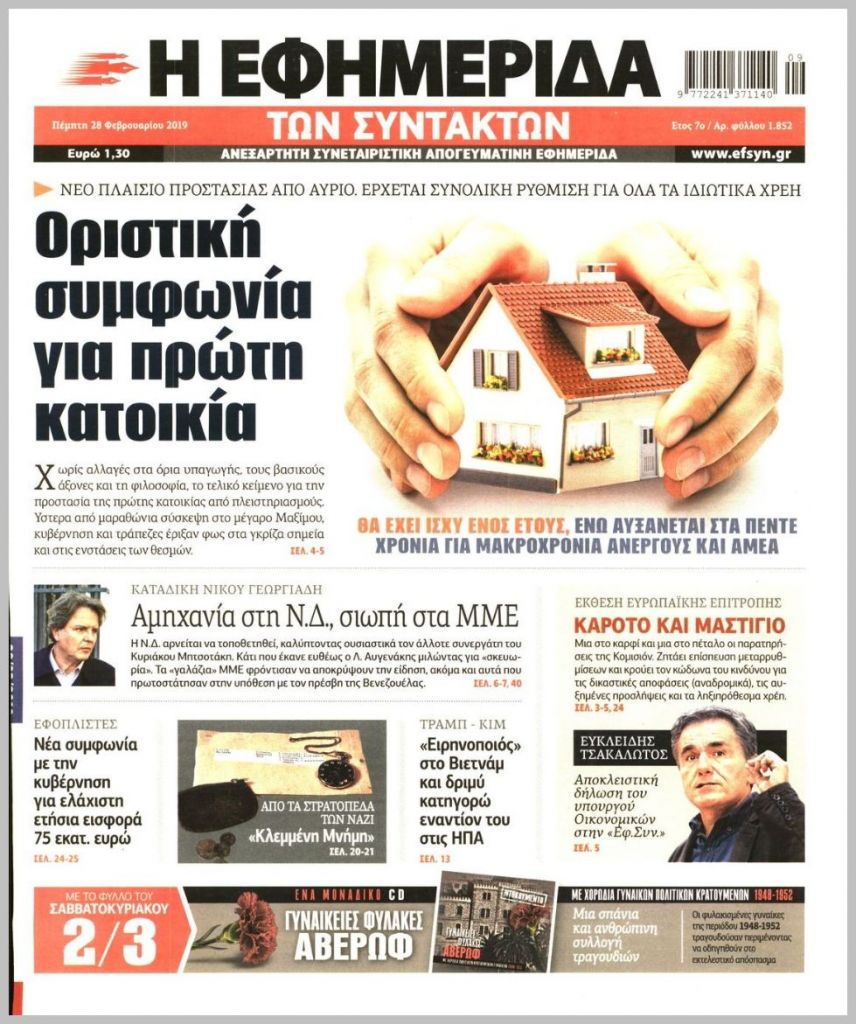 Τα πρωτοσέλιδα των πολιτικών εφημερίδων για σήμερα (28/2)