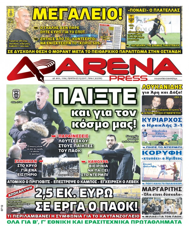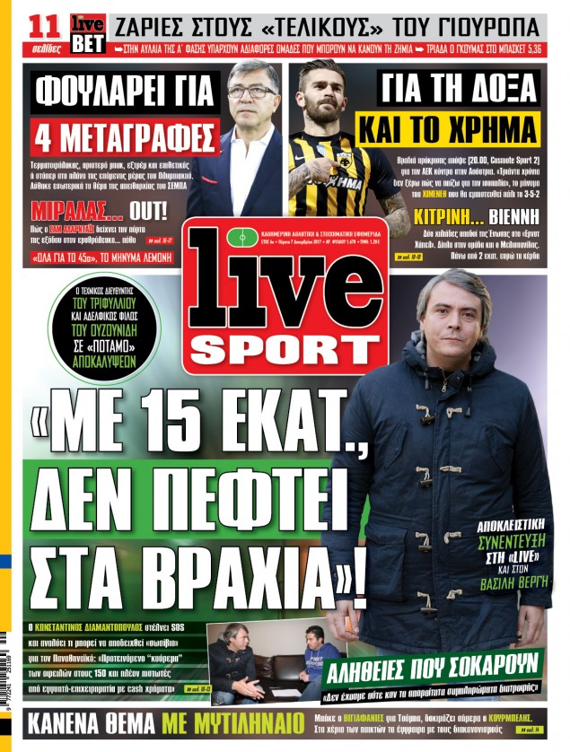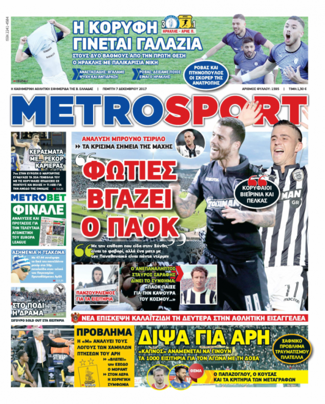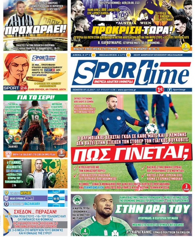 Διαβάστε τα πρωτοσέλιδα των αθλητικών εφημερίδων για σήμερα Πέμπτη (7/12).
