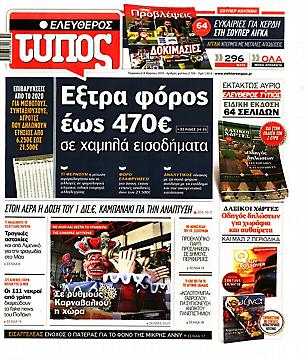Τα πρωτοσέλιδα των πολιτικών εφημερίδων για σήμερα (8/3)