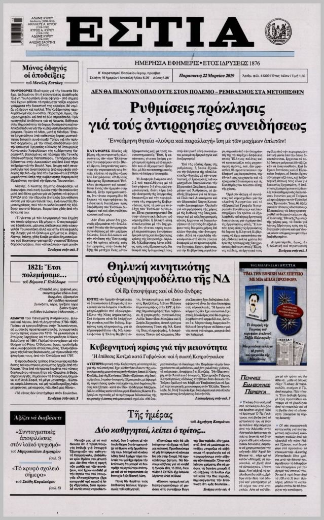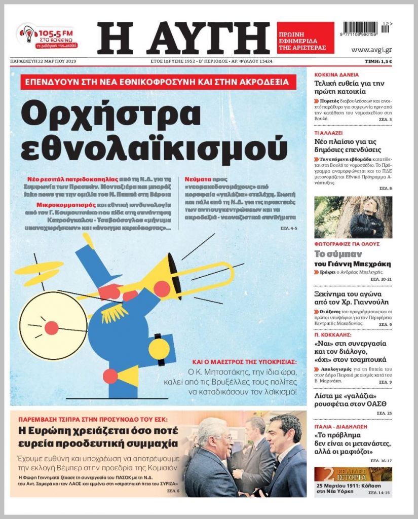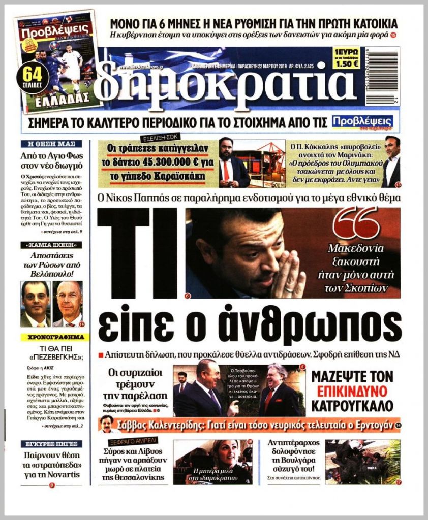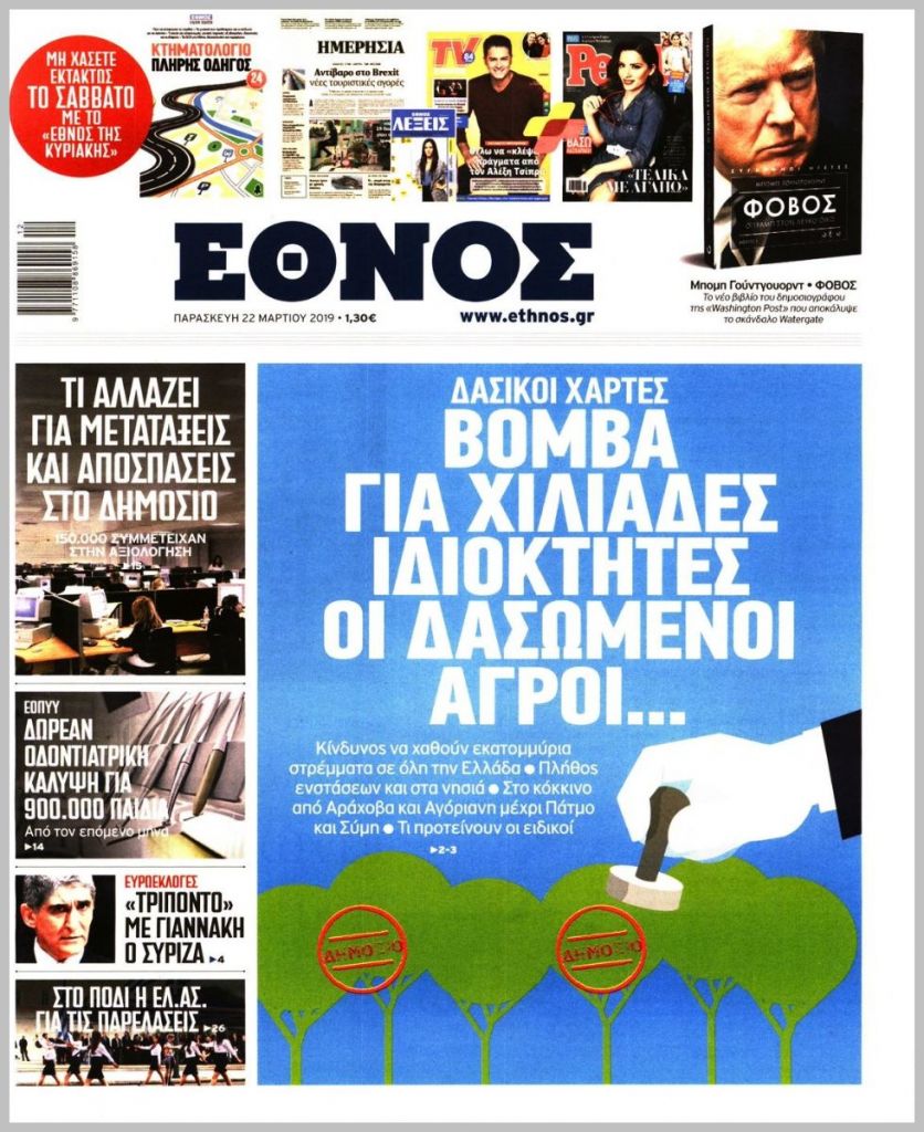 Τα πρωτοσέλιδα των πολιτικών εφημερίδων για σήμερα (22/3)