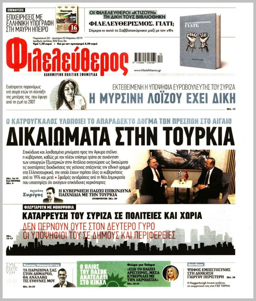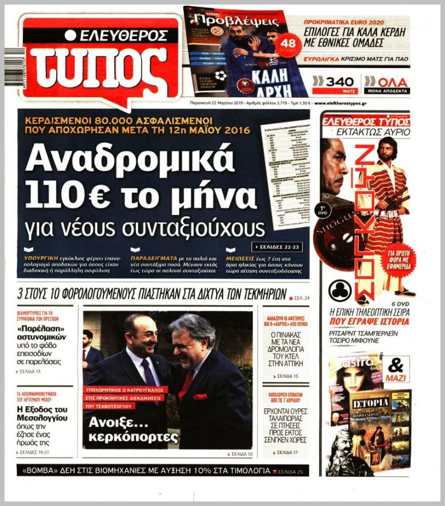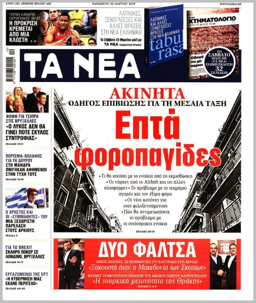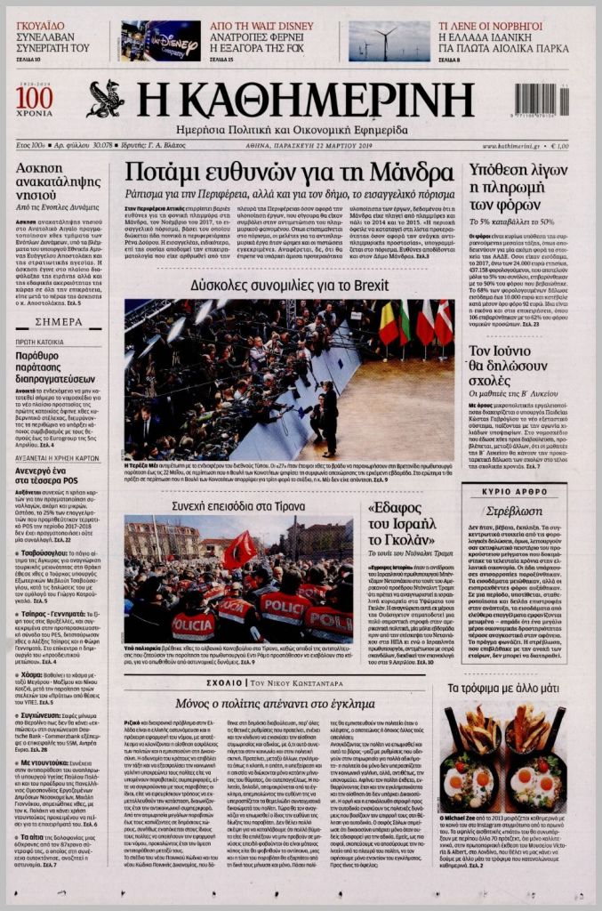 Τα πρωτοσέλιδα των πολιτικών εφημερίδων για σήμερα (22/3)