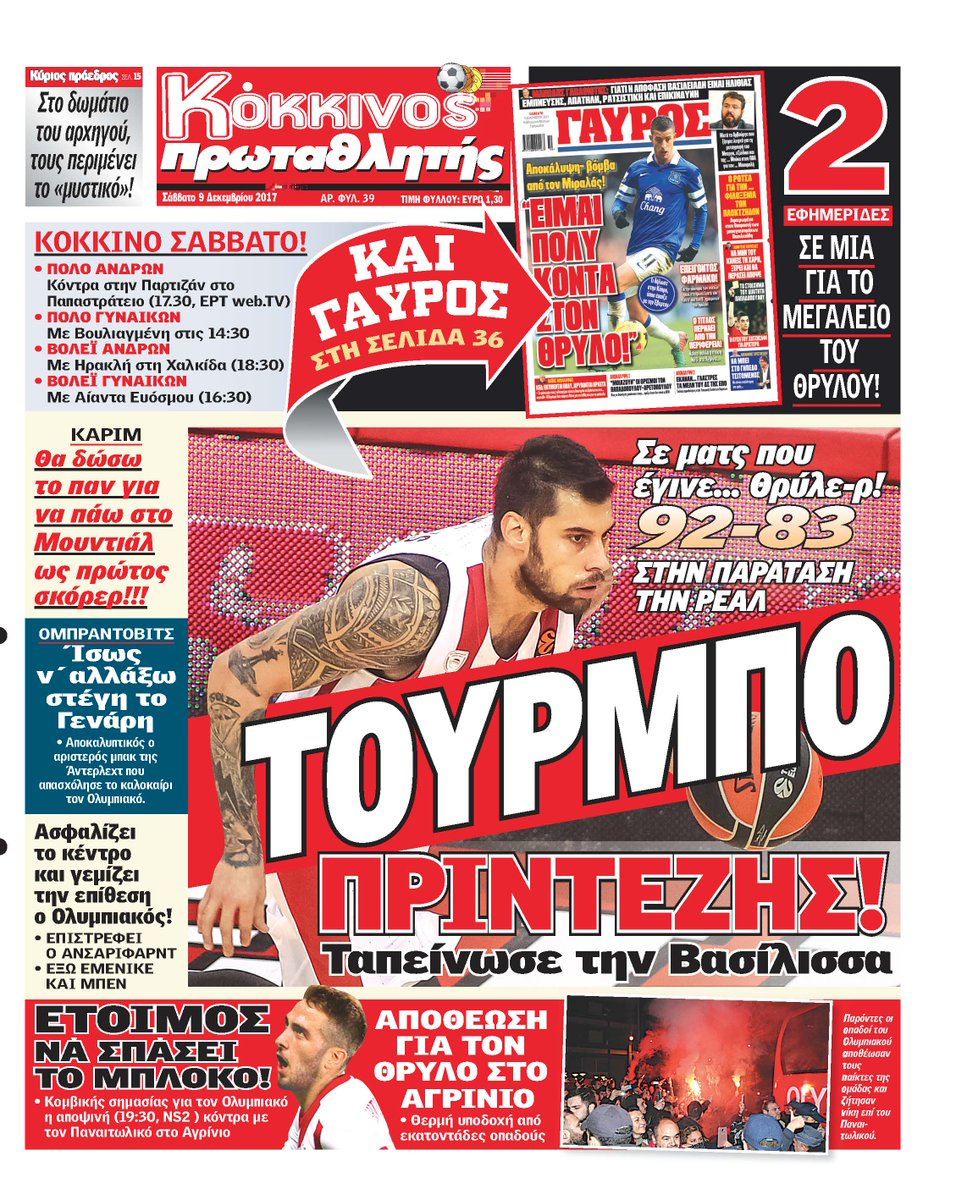 Διαβάστε τα πρωτοσέλιδα των αθλητικών εφημερίδων για σήμερα Σάββατο(9/12).