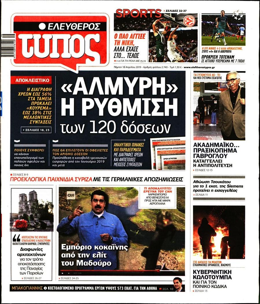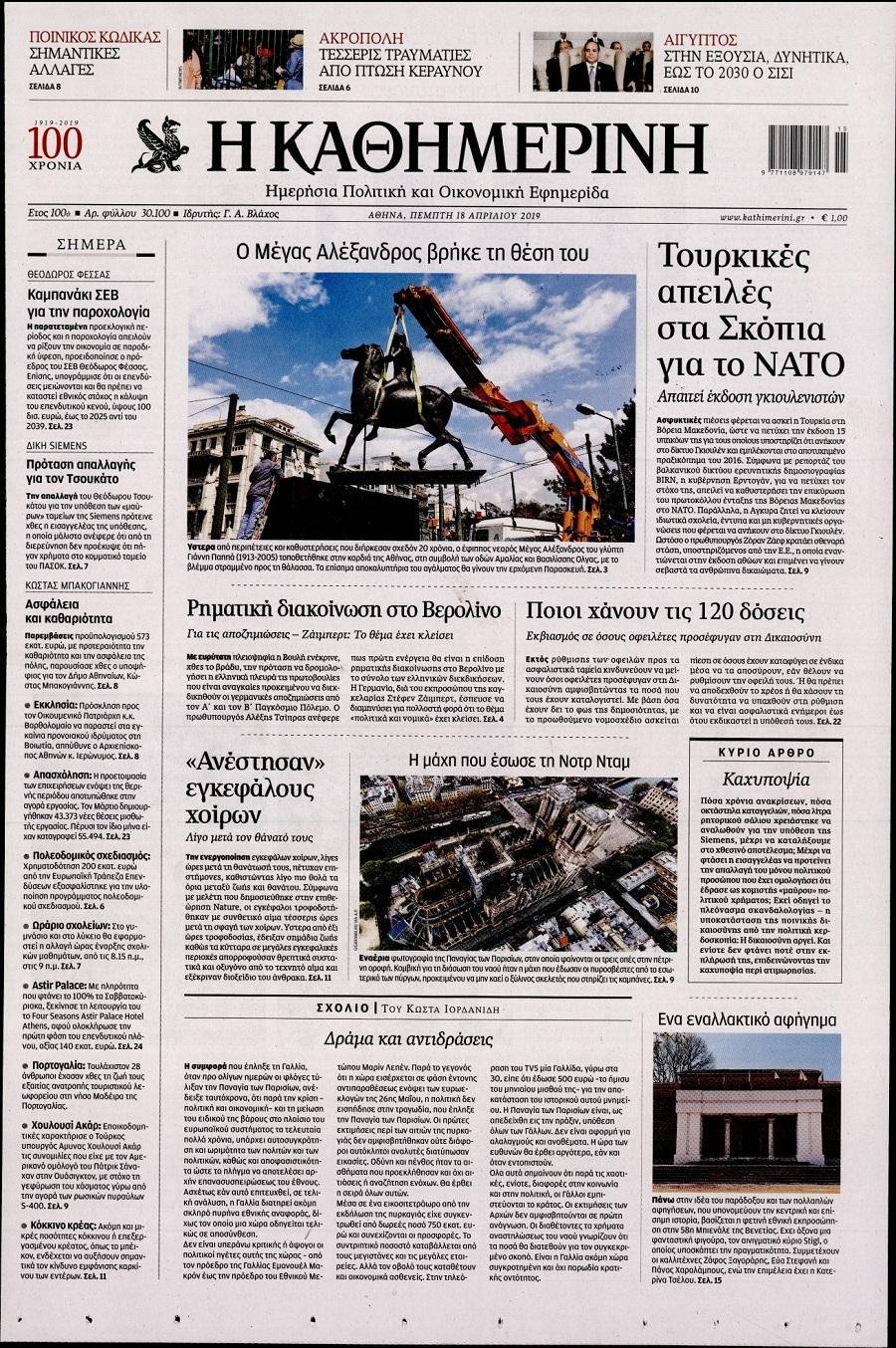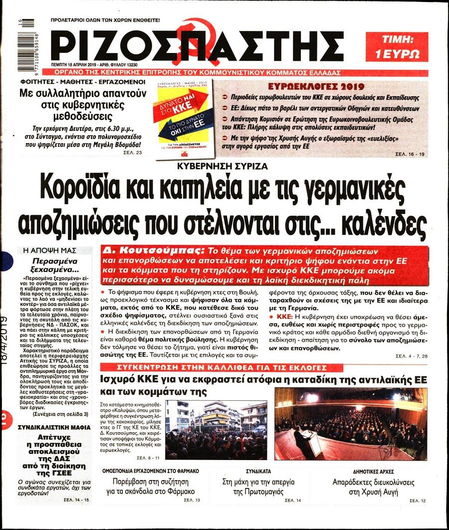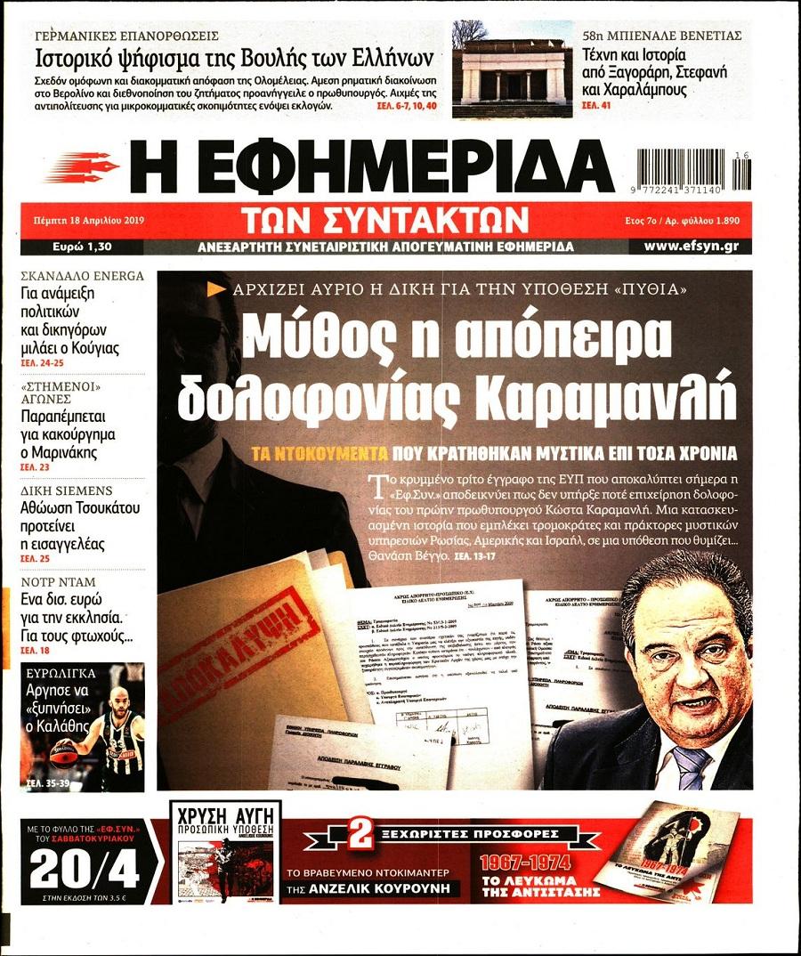 Τα πρωτοσέλιδα των πολιτικών εφημερίδων για σήμερα (18/4)
