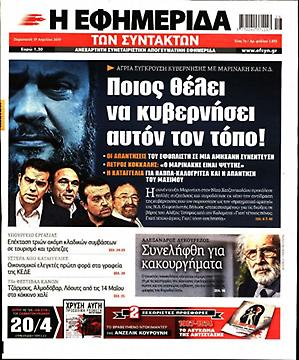 Τα πρωτοσέλιδα των πολιτικών εφημερίδων για σήμερα (19/4)