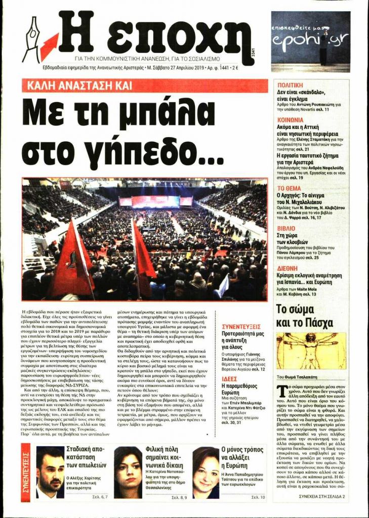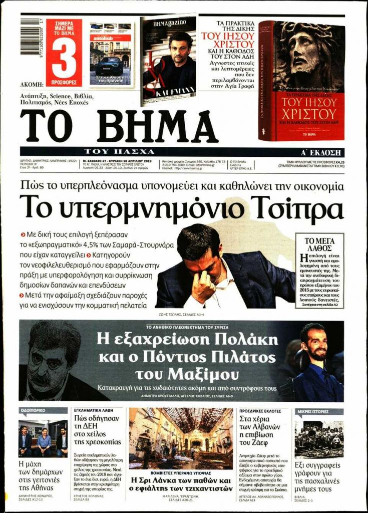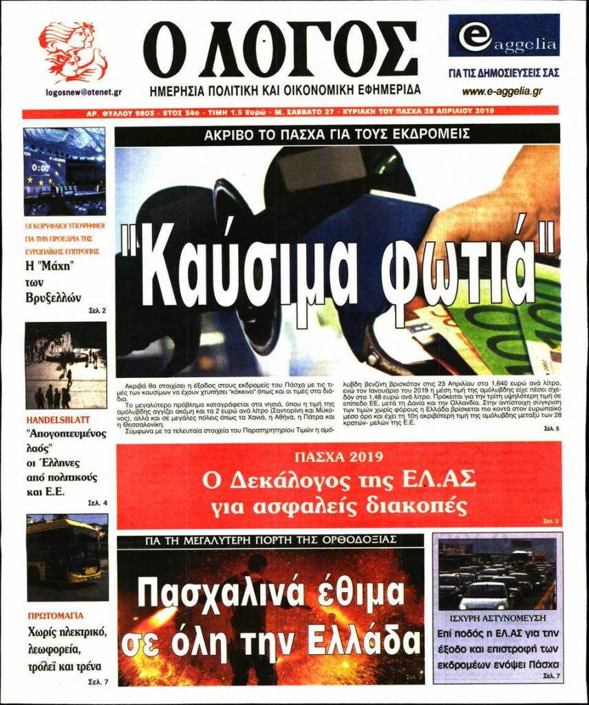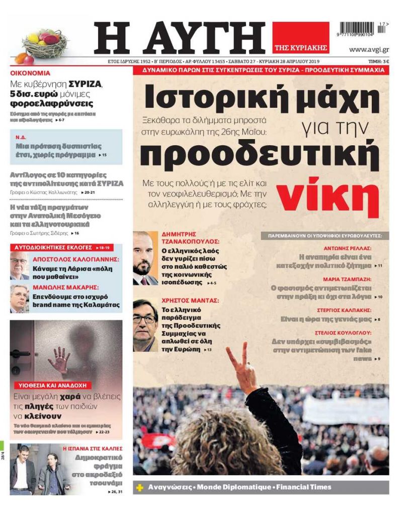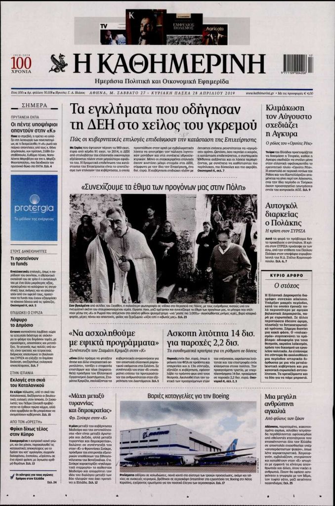 Τα πρωτοσέλιδα των πολιτικών εφημερίδων για σήμερα (27/4)