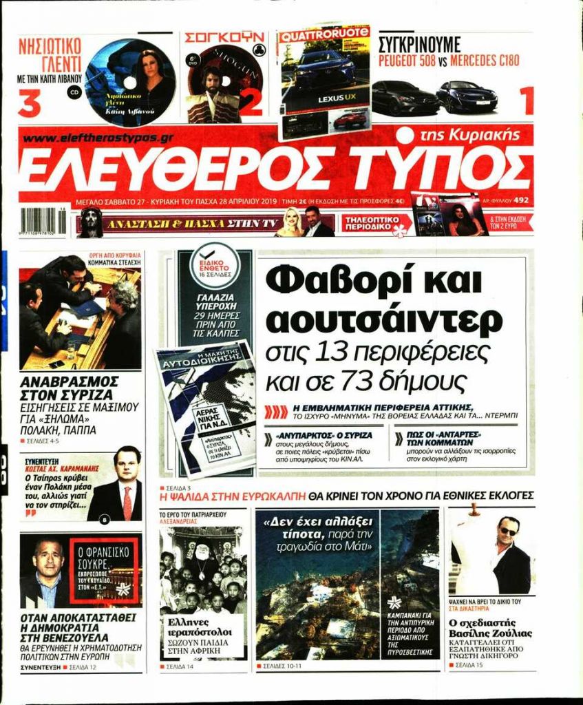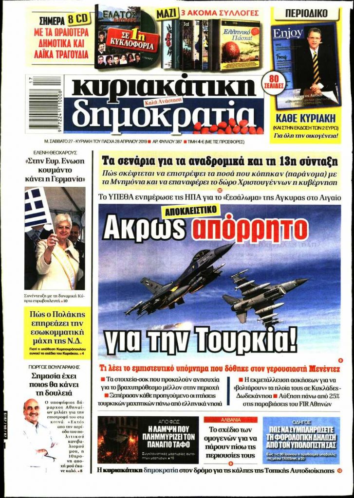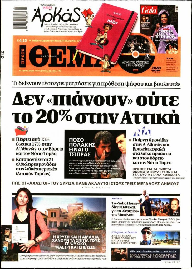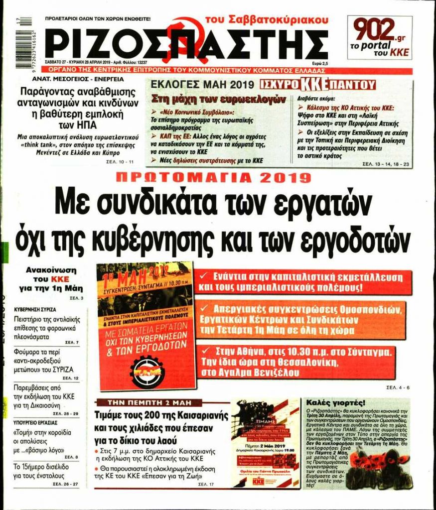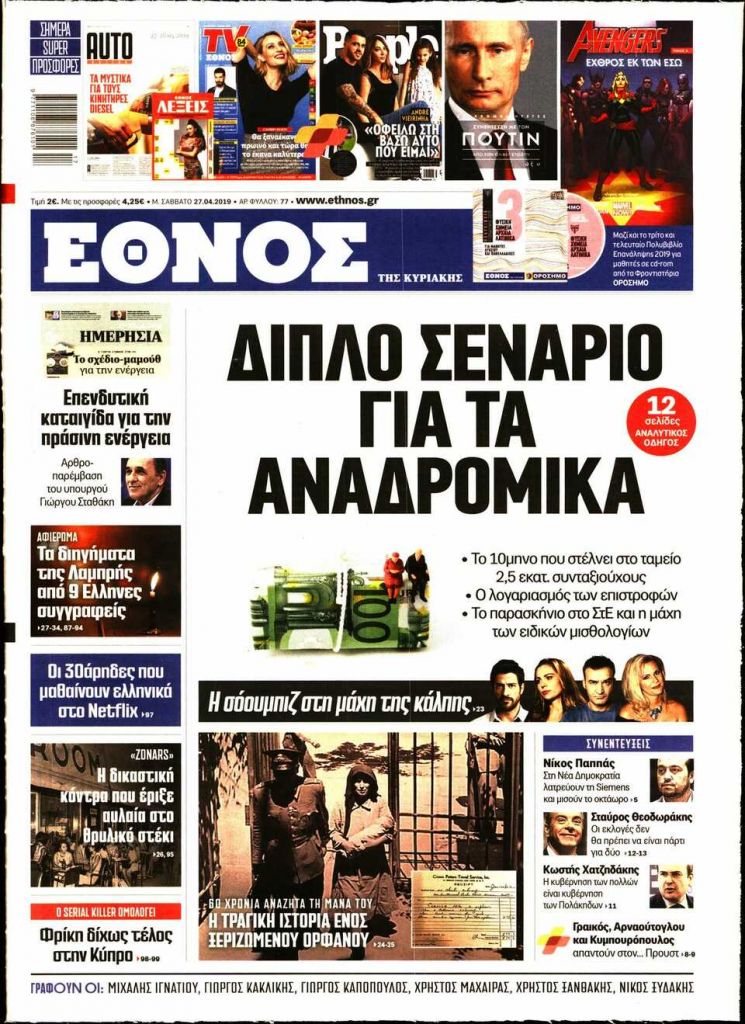Τα πρωτοσέλιδα των πολιτικών εφημερίδων για σήμερα (27/4)