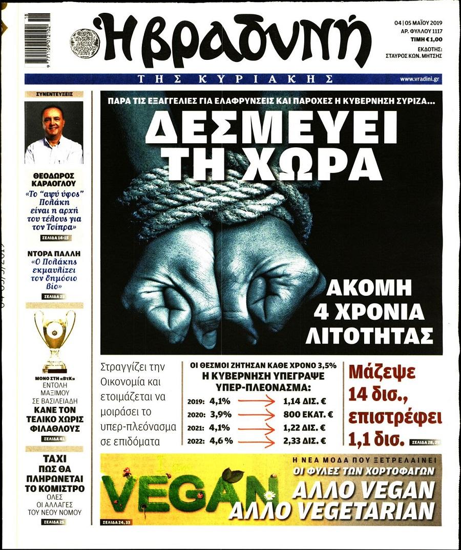 Τα πρωτοσέλιδα των πολιτικών εφημερίδων για σήμερα (4/5)