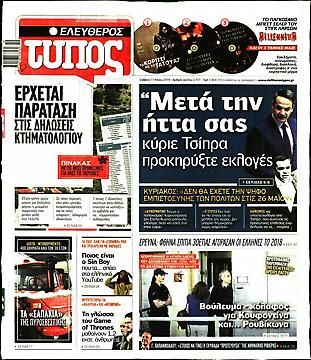 Διαβάστε τα πρωτοσέλιδα των πολιτικών εφημερίδων για σήμερα.