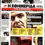 Διαβάστε τα πρωτοσέλιδα των πολιτικών εφημερίδων για σήμερα.