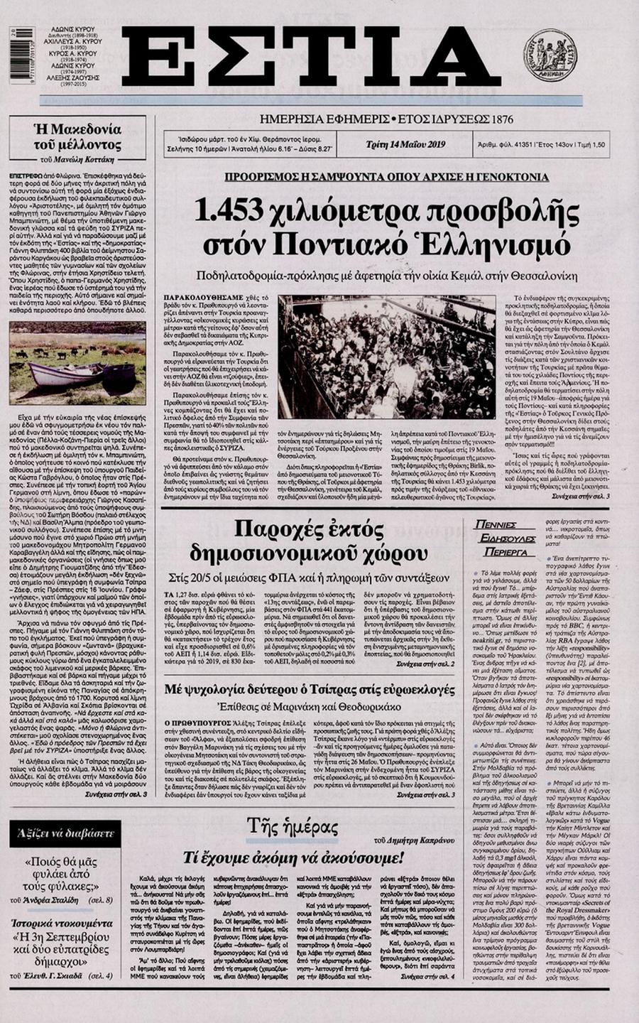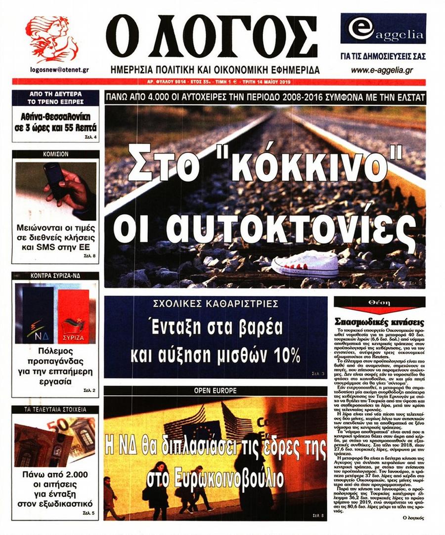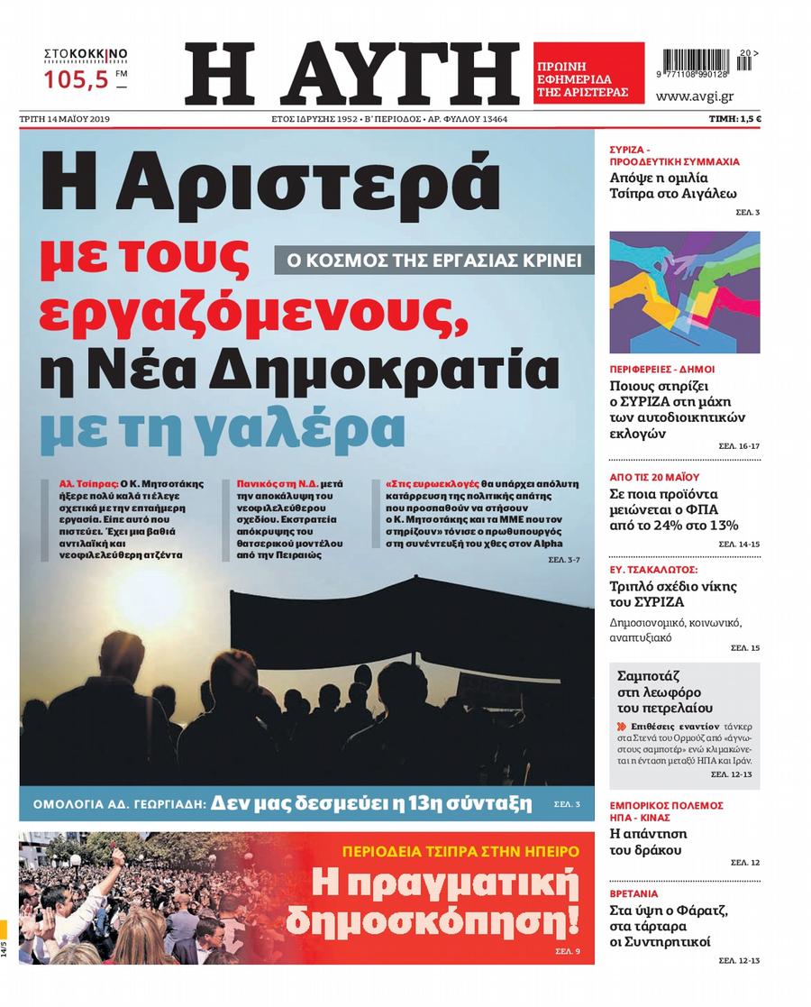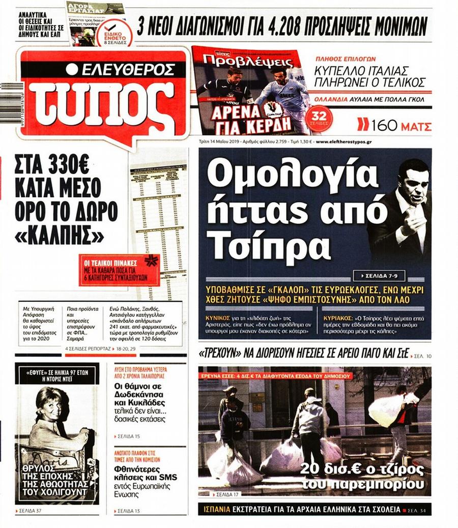 Τα πρωτοσέλιδα των πολιτικών εφημερίδων για σήμερα (14/5)