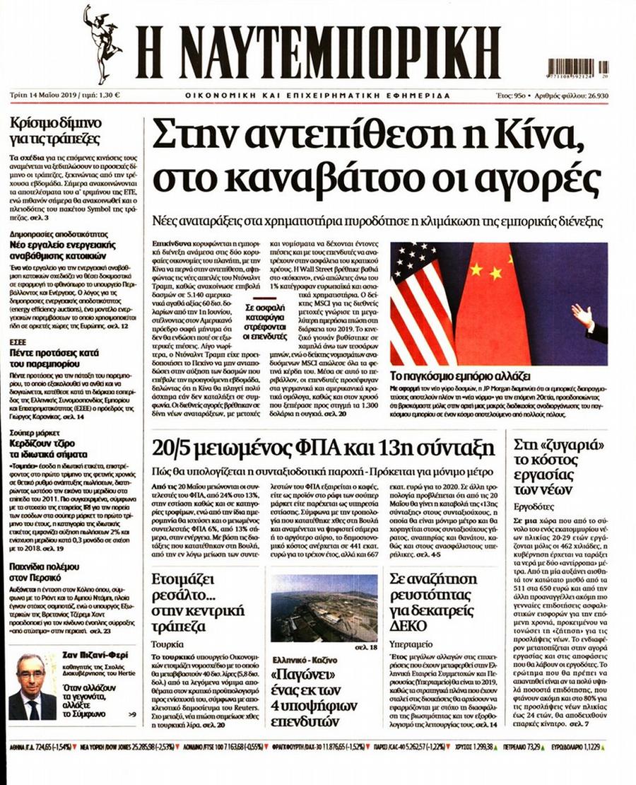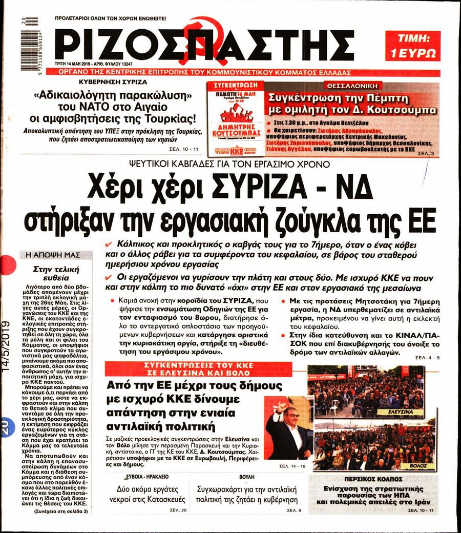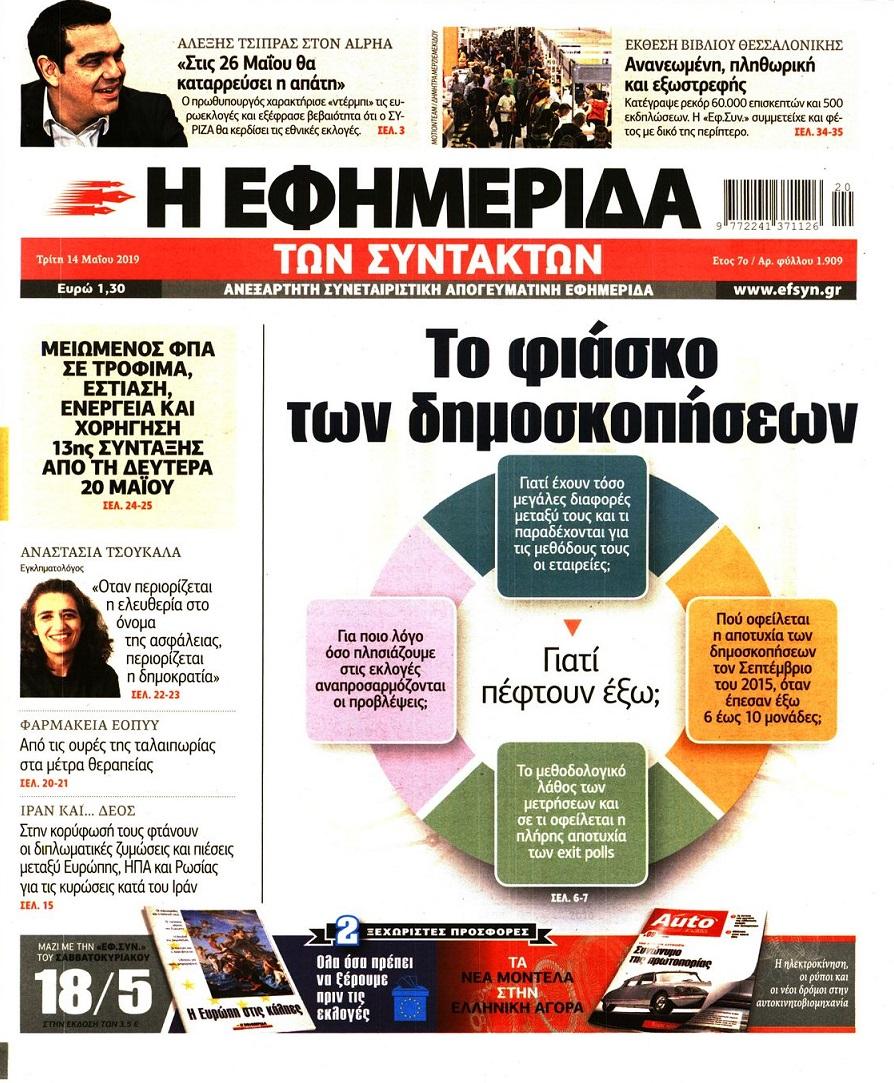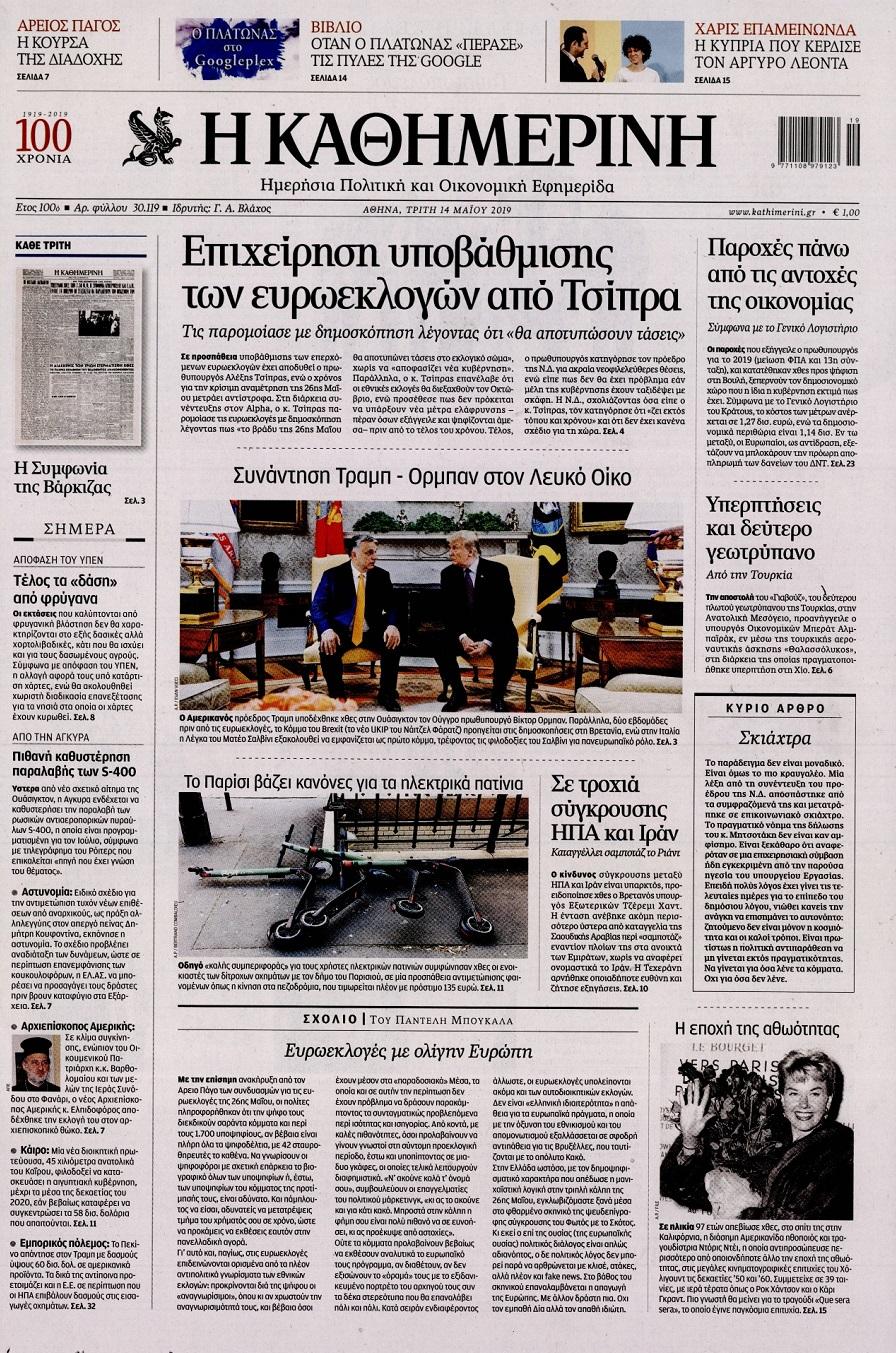 Τα πρωτοσέλιδα των πολιτικών εφημερίδων για σήμερα (14/5)