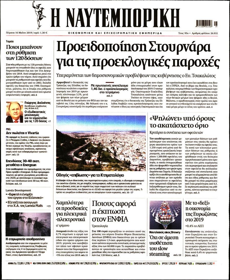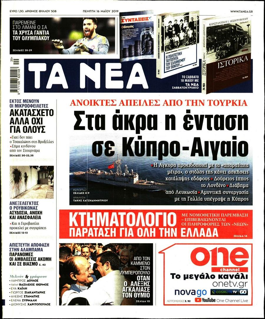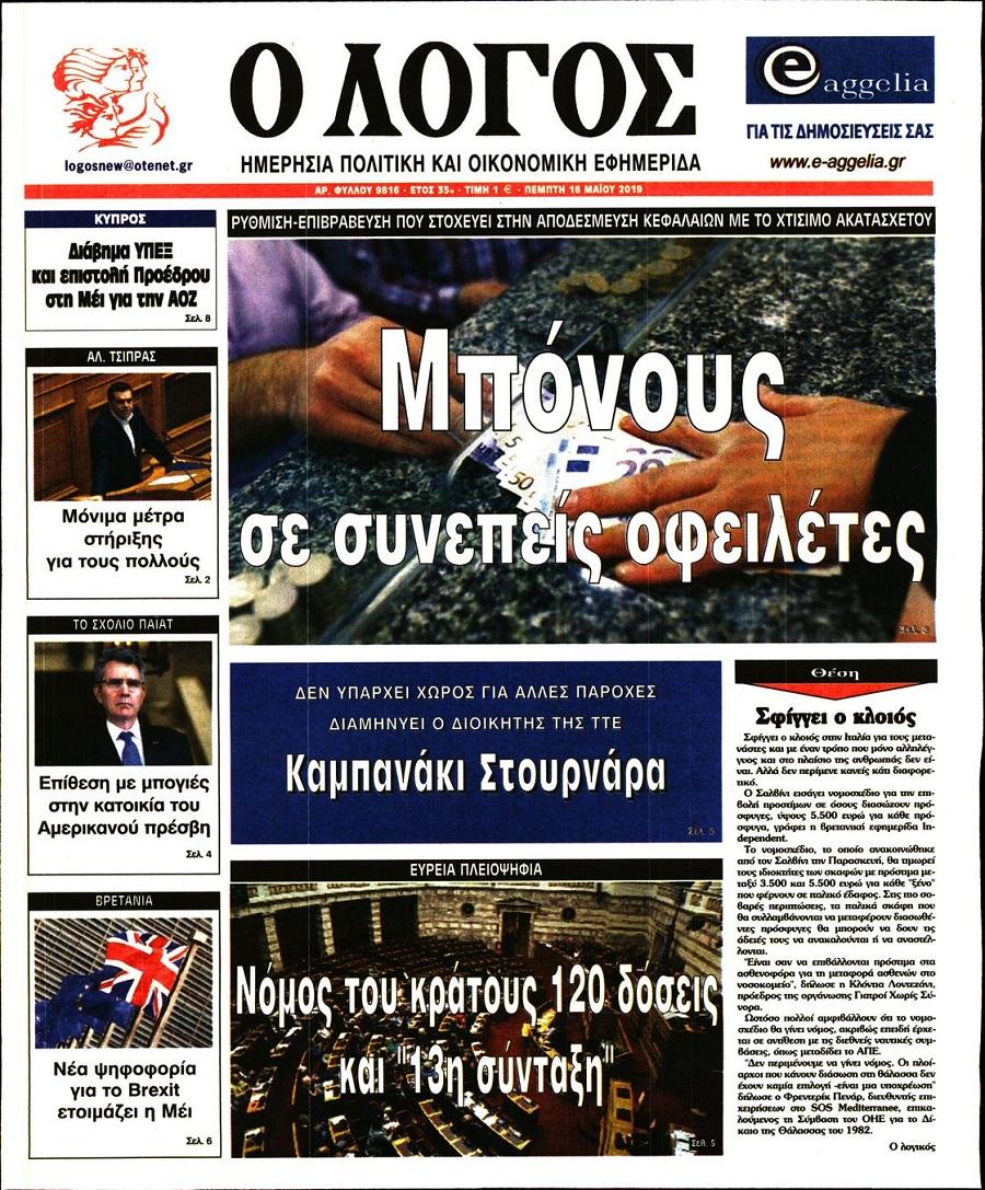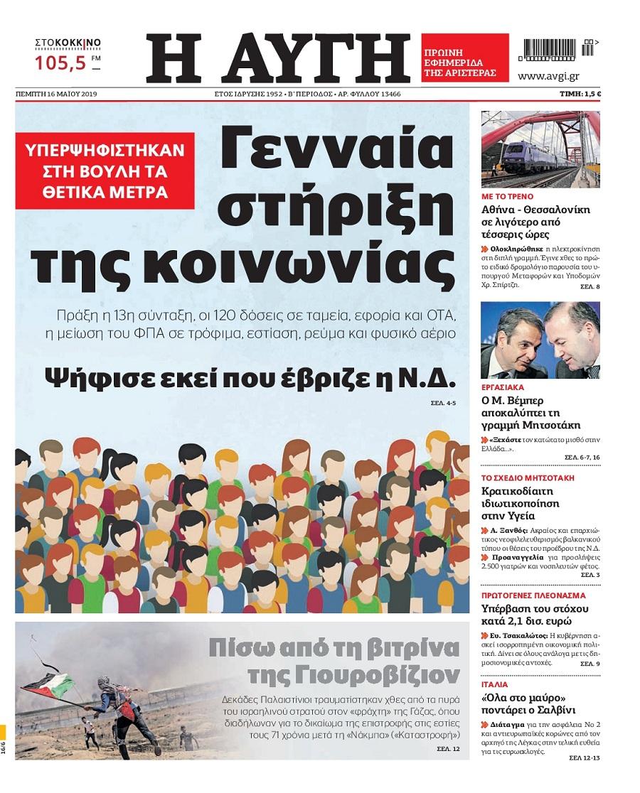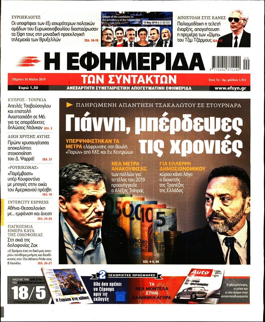 Τα πρωτοσέλιδα των πολιτικών εφημερίδων για σήμερα (16/5)