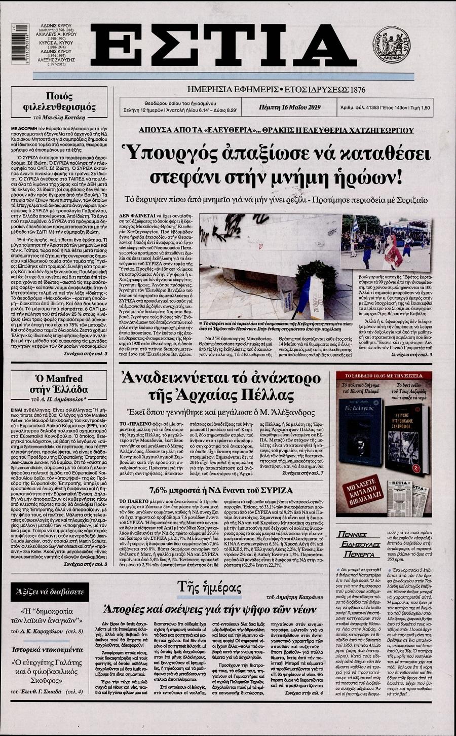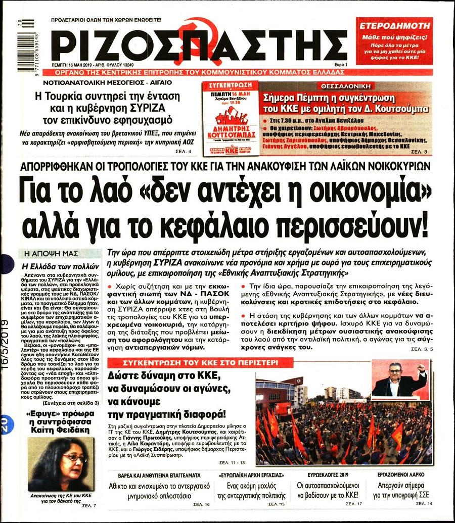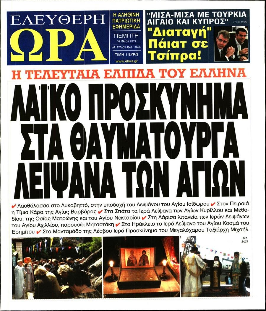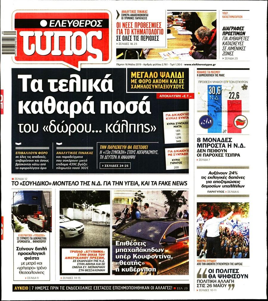 Τα πρωτοσέλιδα των πολιτικών εφημερίδων για σήμερα (16/5)