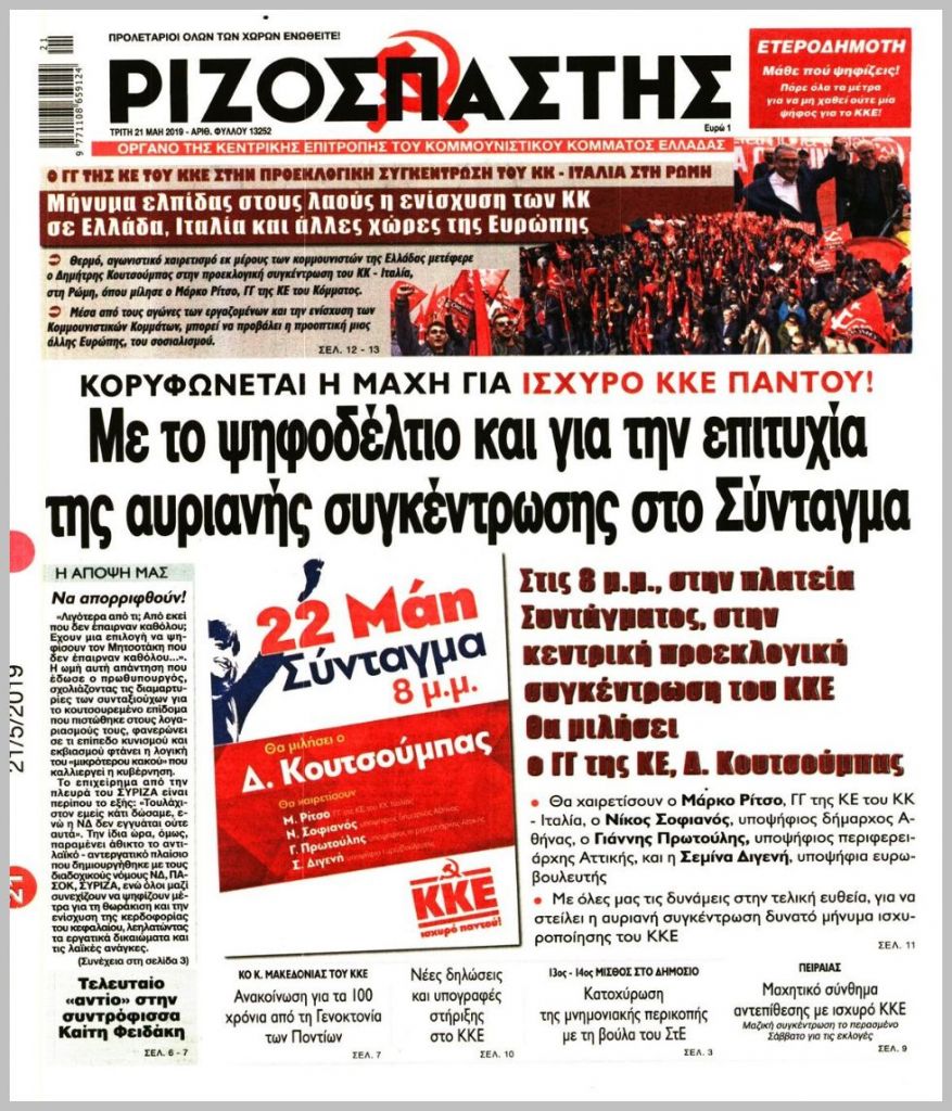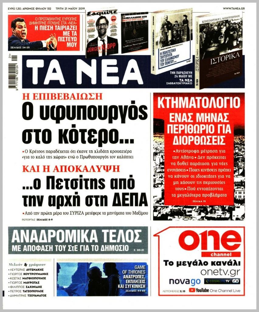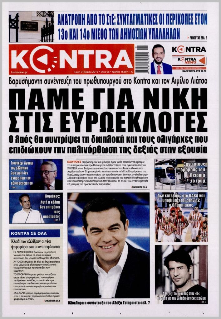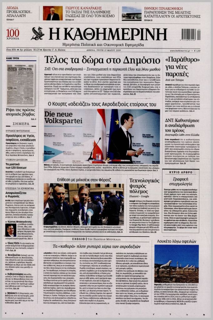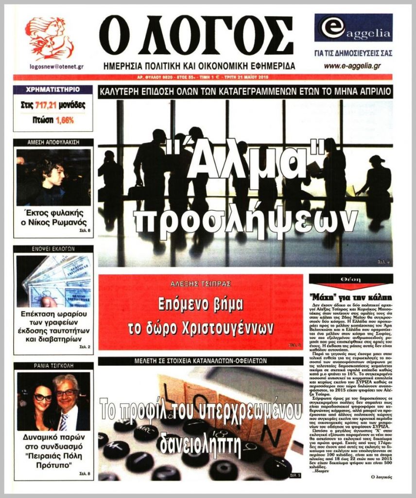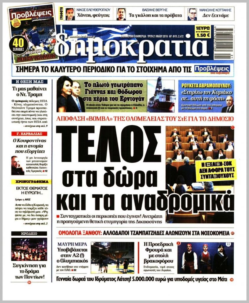 Τα πρωτοσέλιδα των πολιτικών εφημερίδων για σήμερα (21/5)