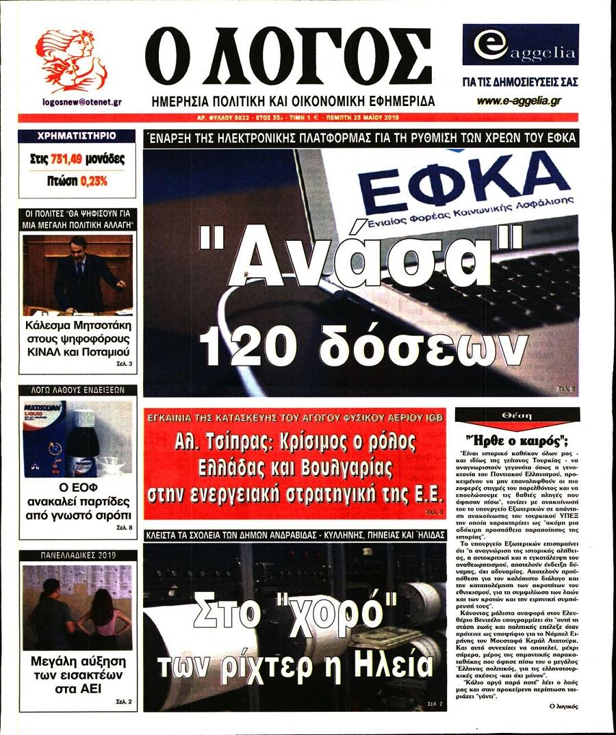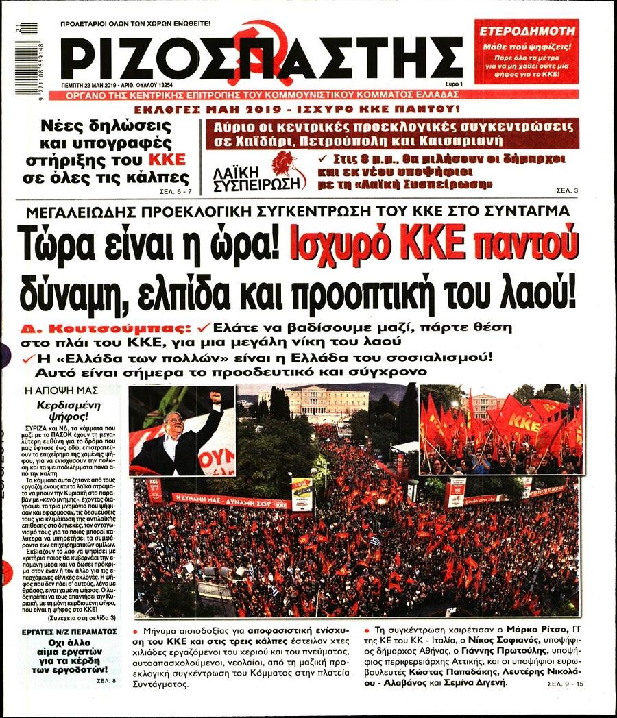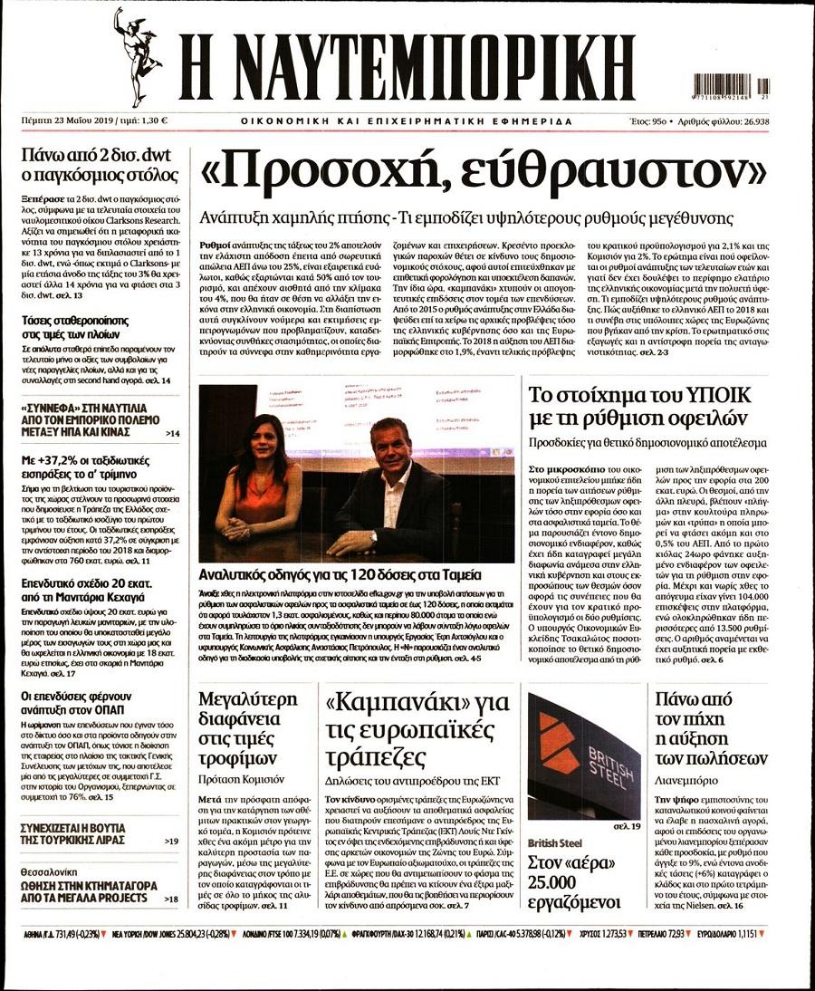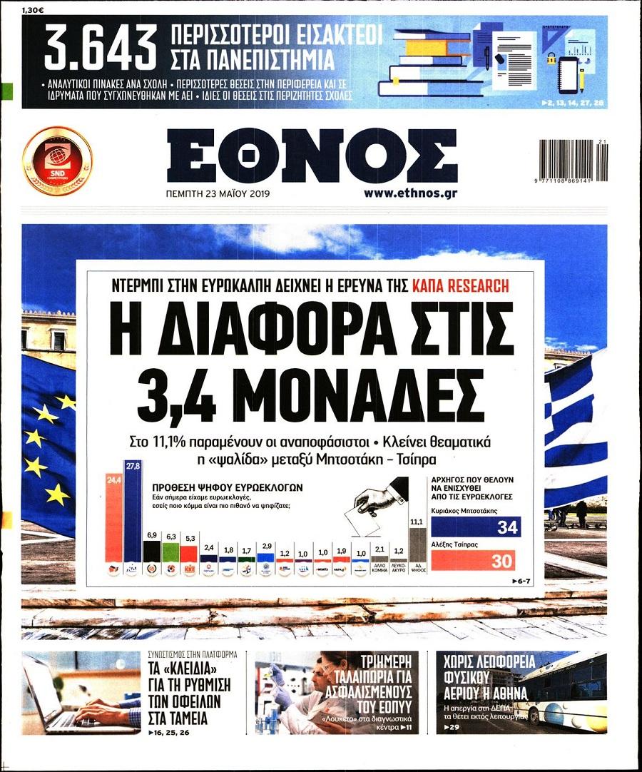 Τα πρωτοσέλιδα των πολιτικών εφημερίδων για σήμερα (23/5)