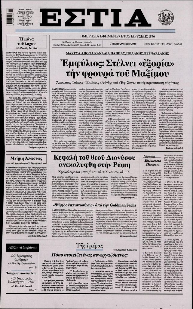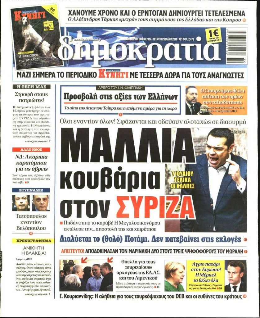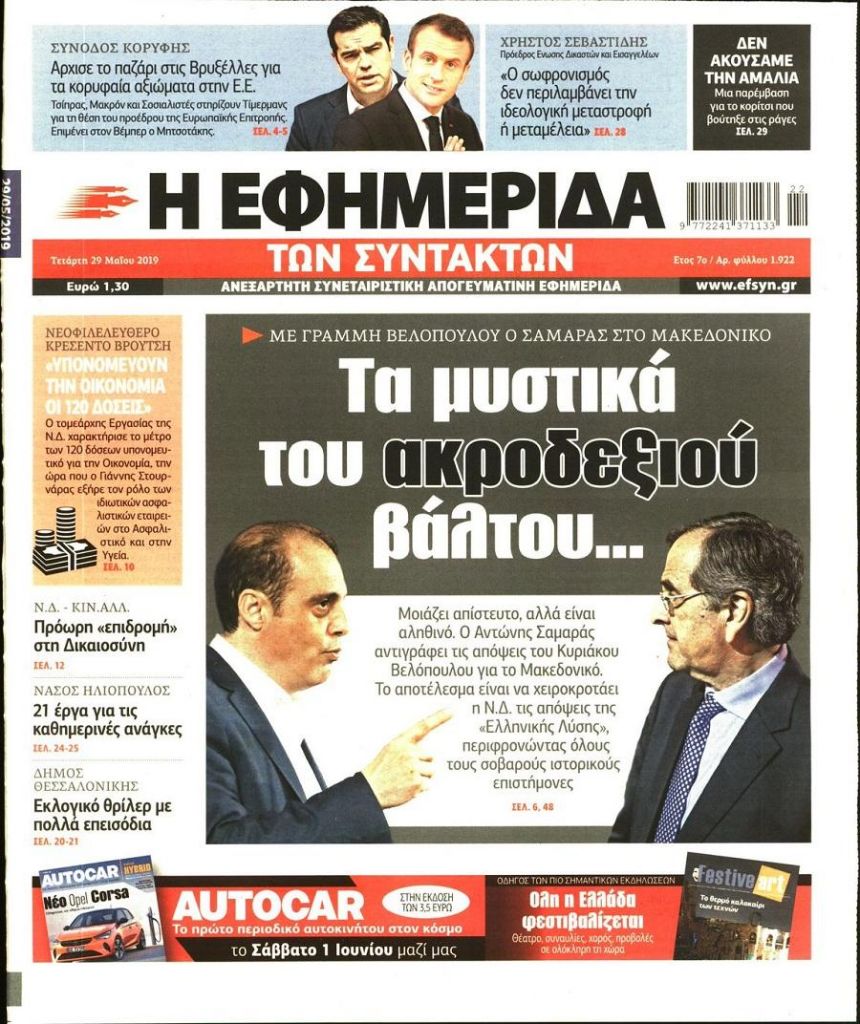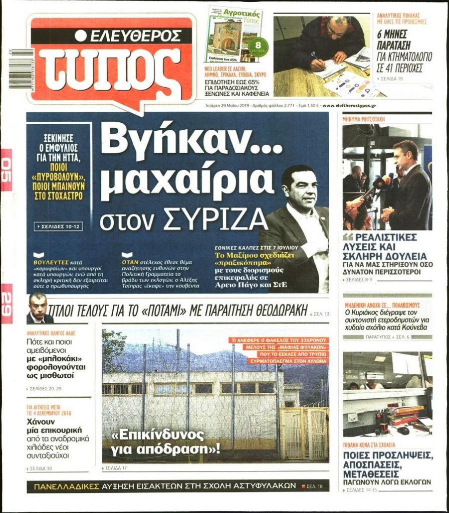 Τα πρωτοσέλιδα των πολιτικών εφημερίδων για σήμερα (29/5)