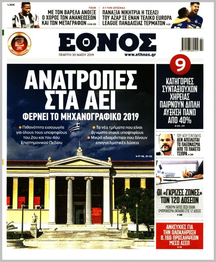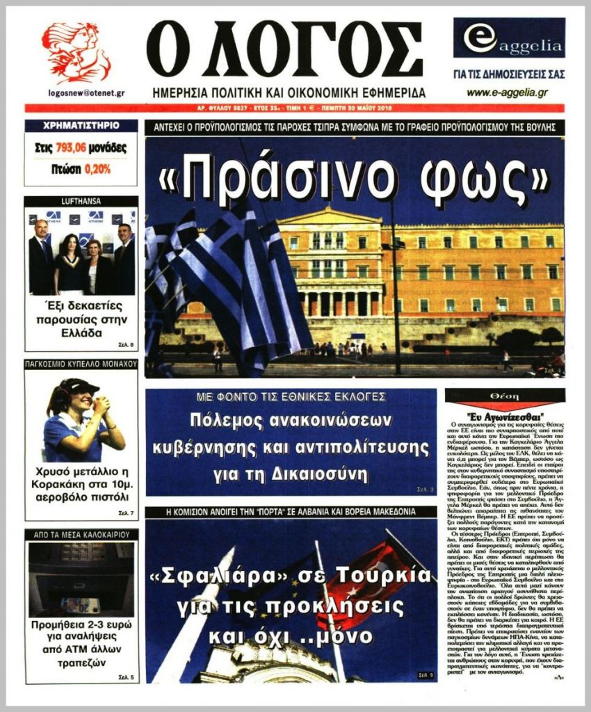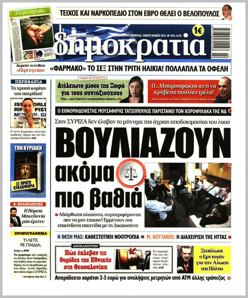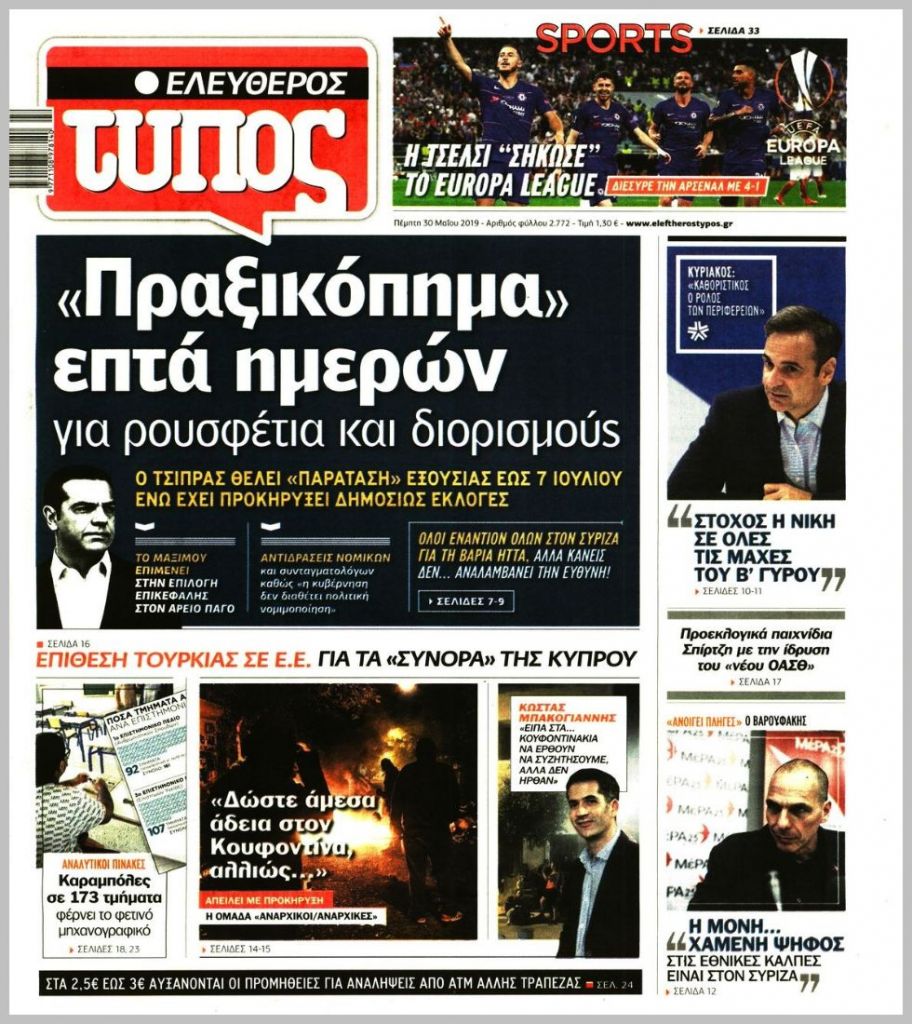 Τα πρωτοσέλιδα των πολιτικών εφημερίδων για σήμερα (30/5)