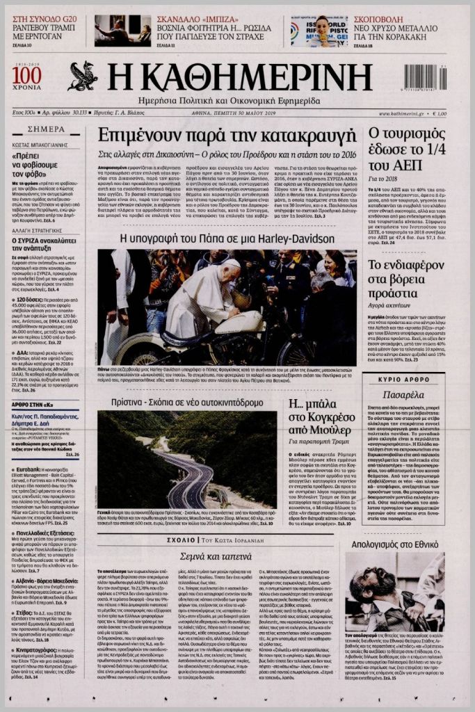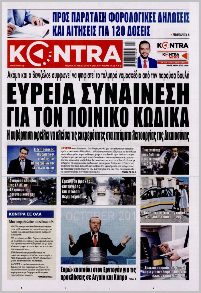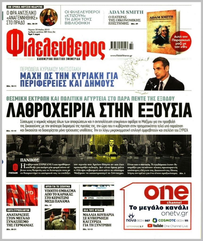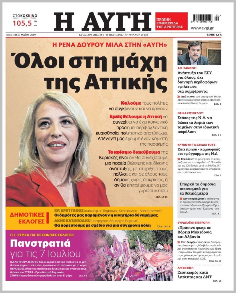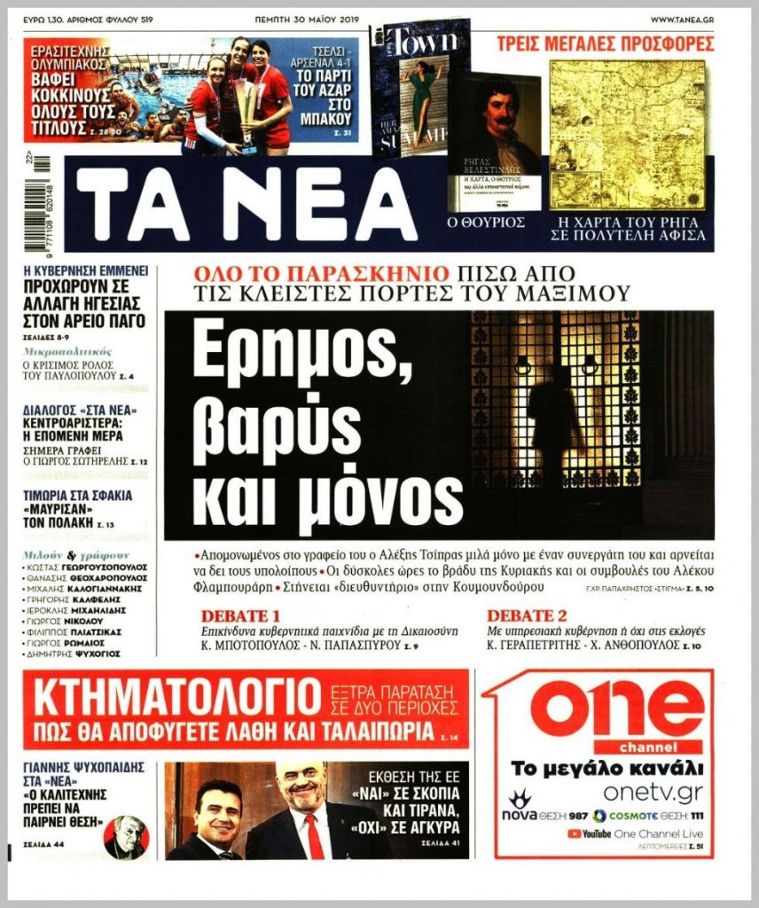 Τα πρωτοσέλιδα των πολιτικών εφημερίδων για σήμερα (30/5)