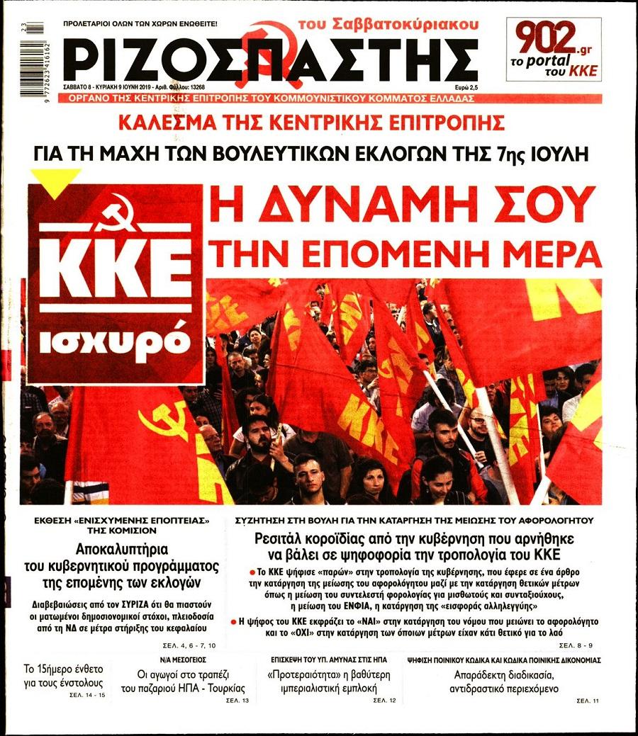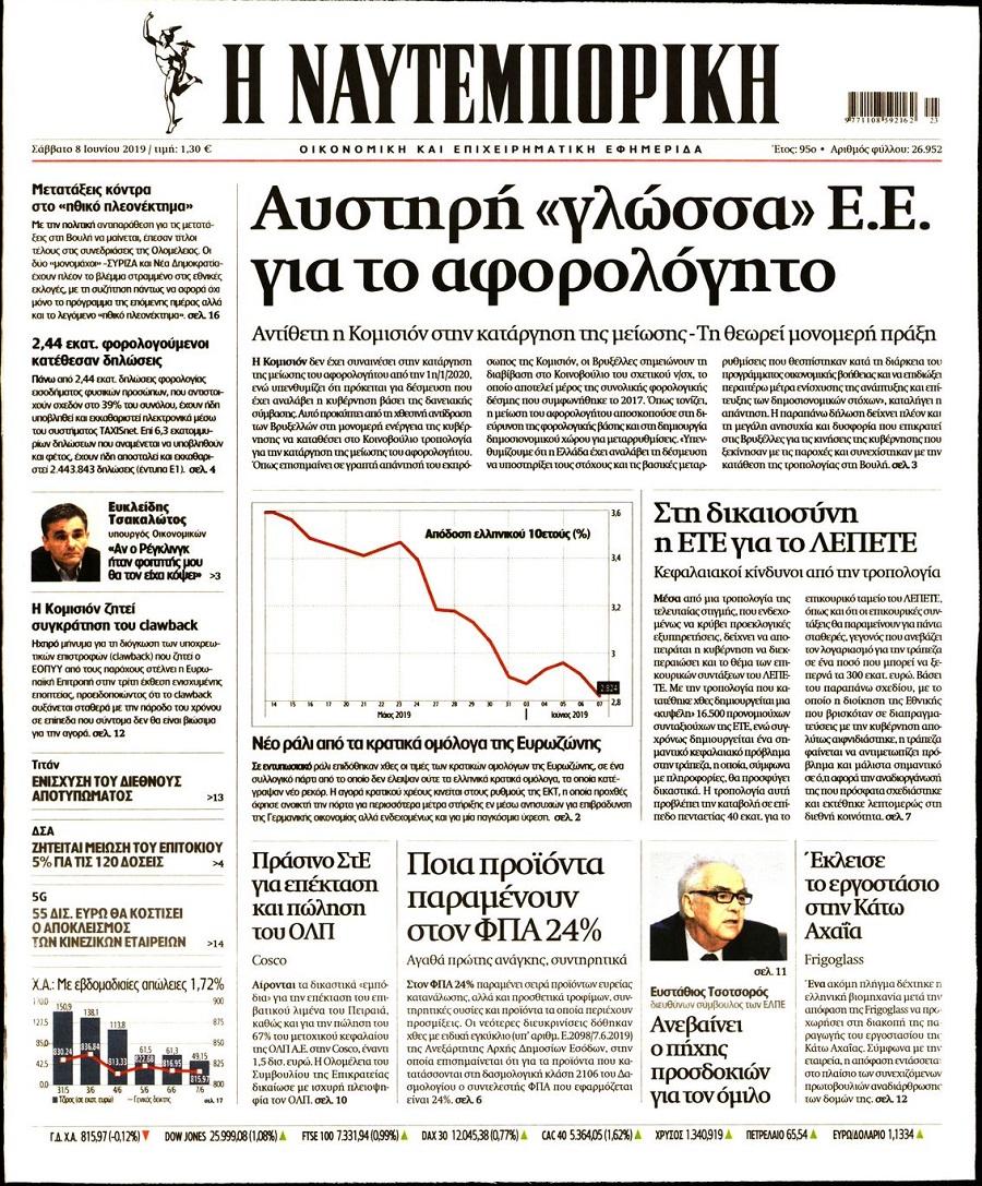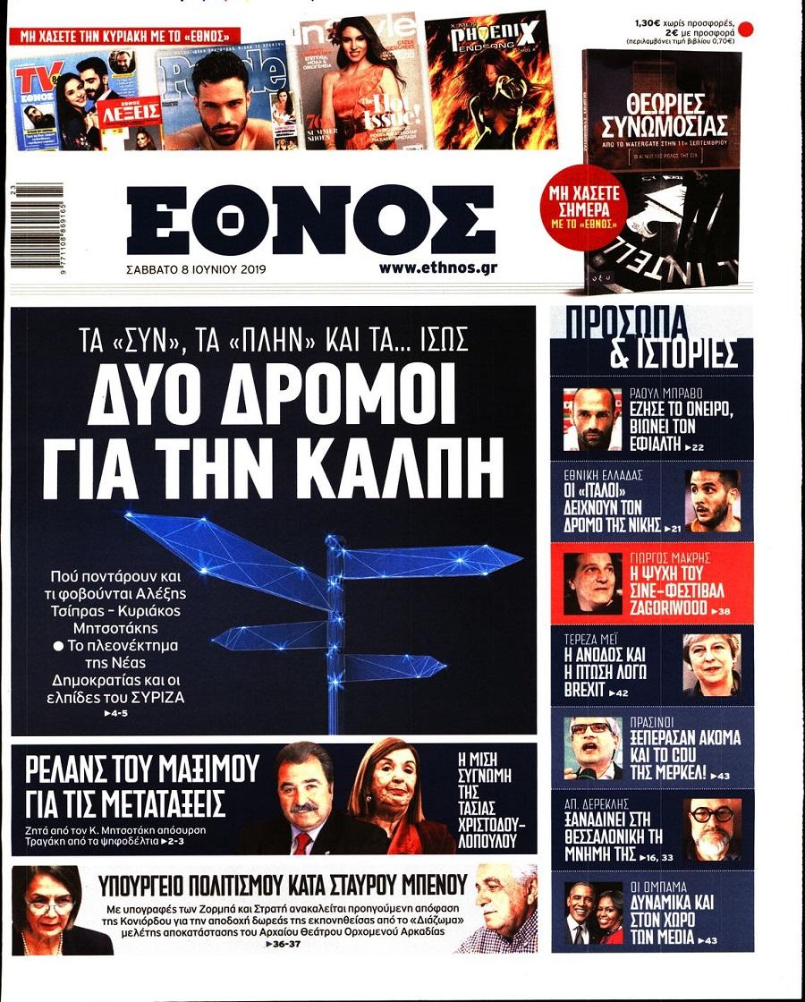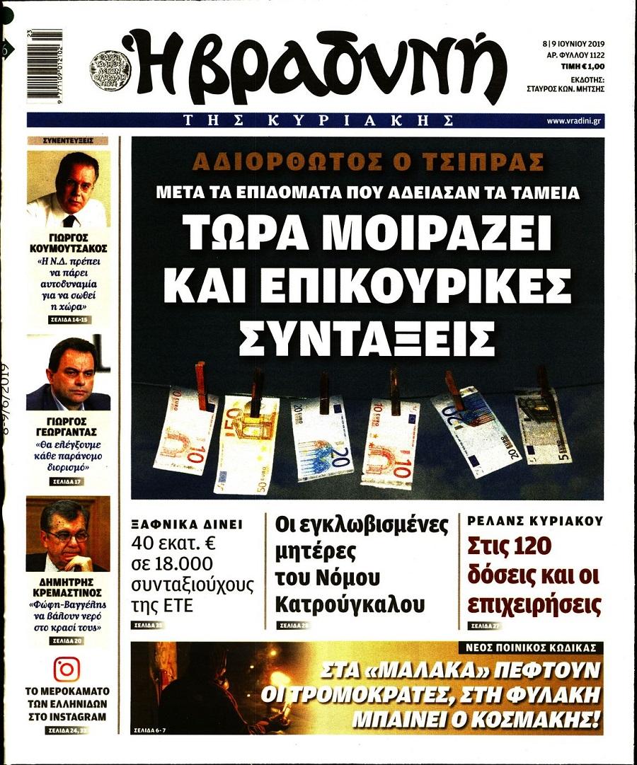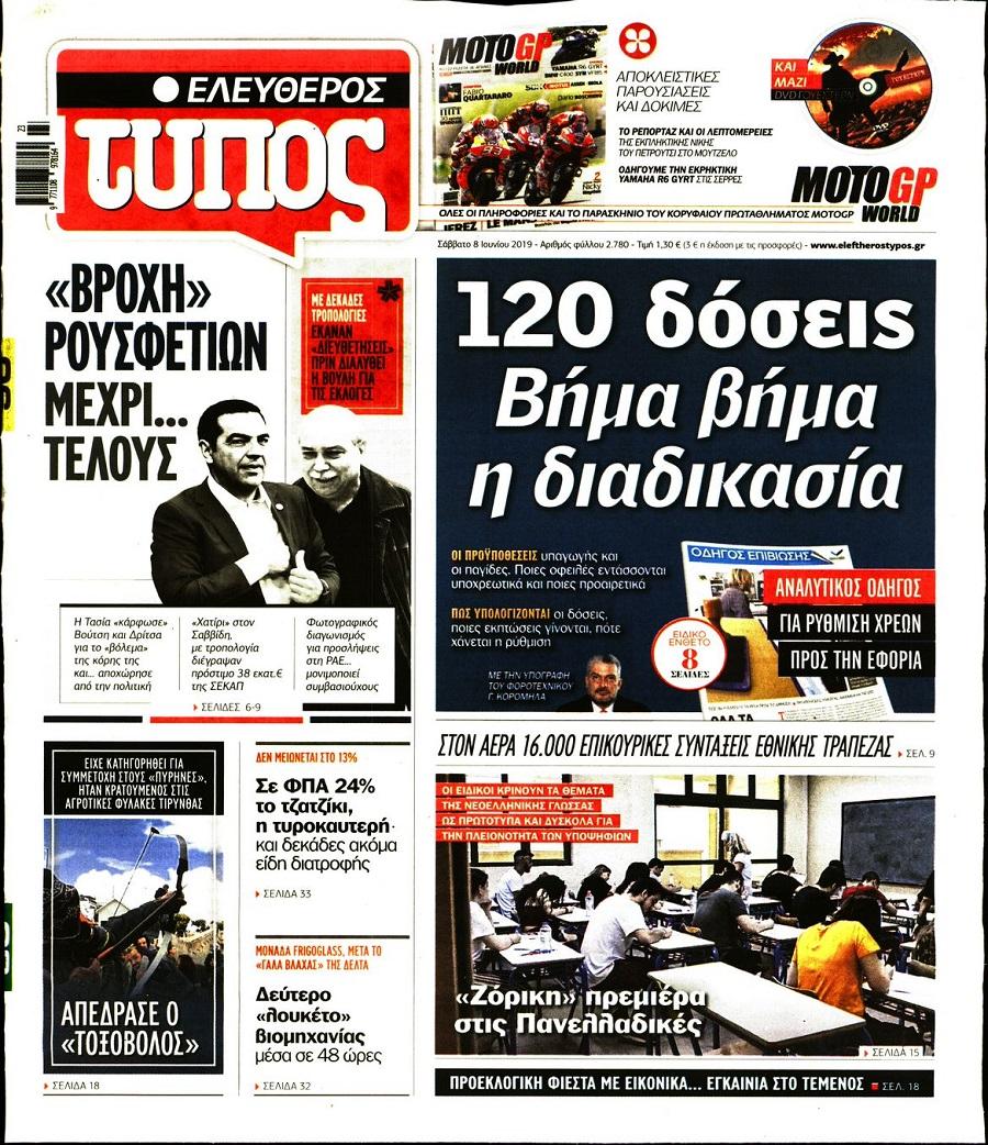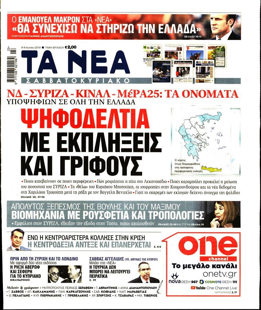Τα πρωτοσέλιδα των πολιτικών εφημερίδων για σήμερα (8/6)
