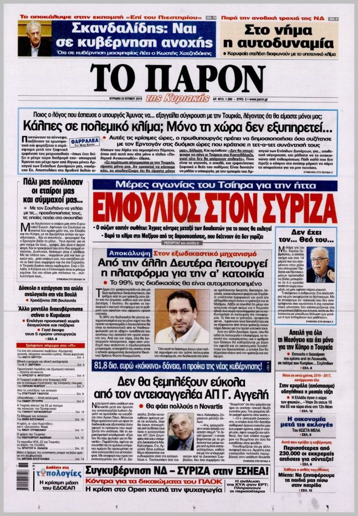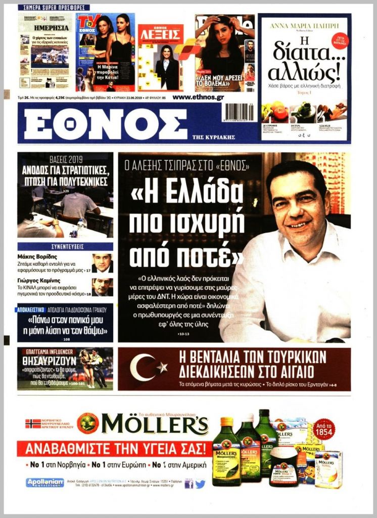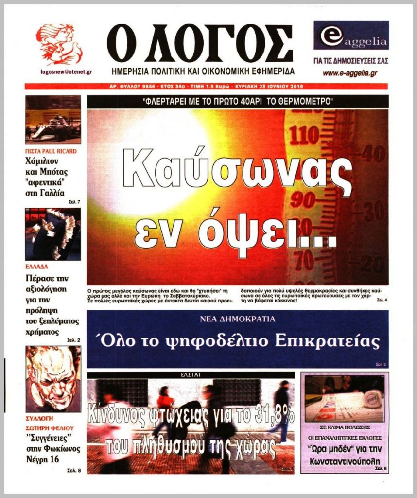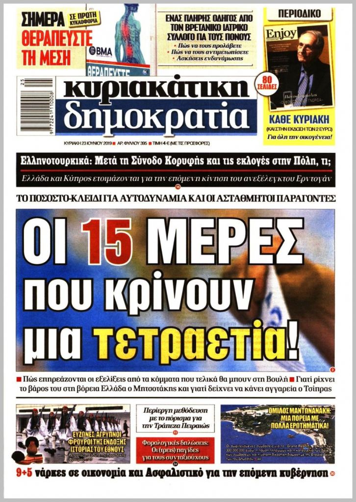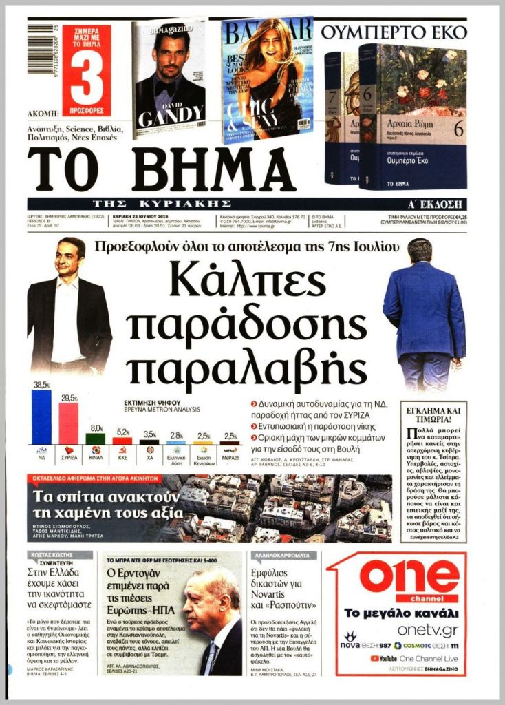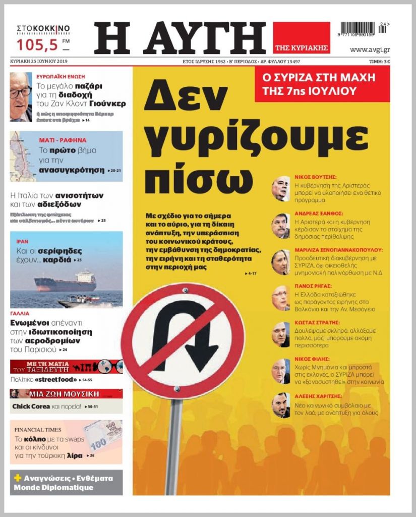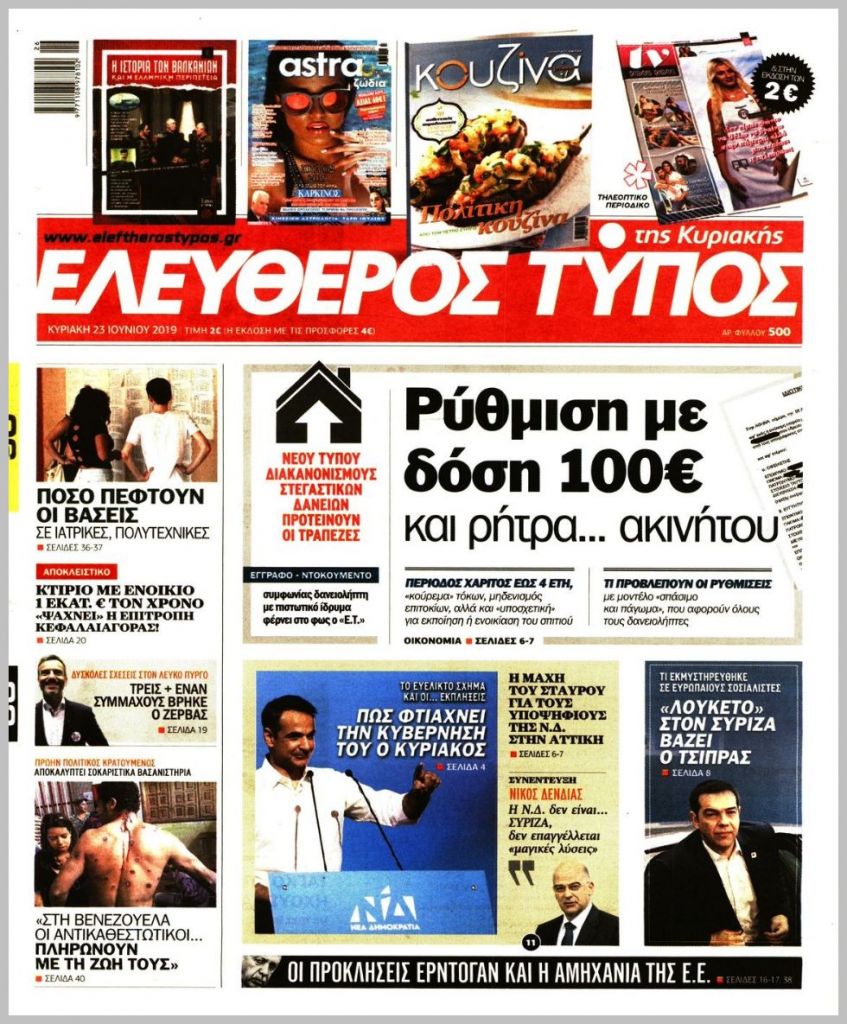 Τα πρωτοσέλιδα των πολιτικών εφημερίδων για σήμερα (23/6)